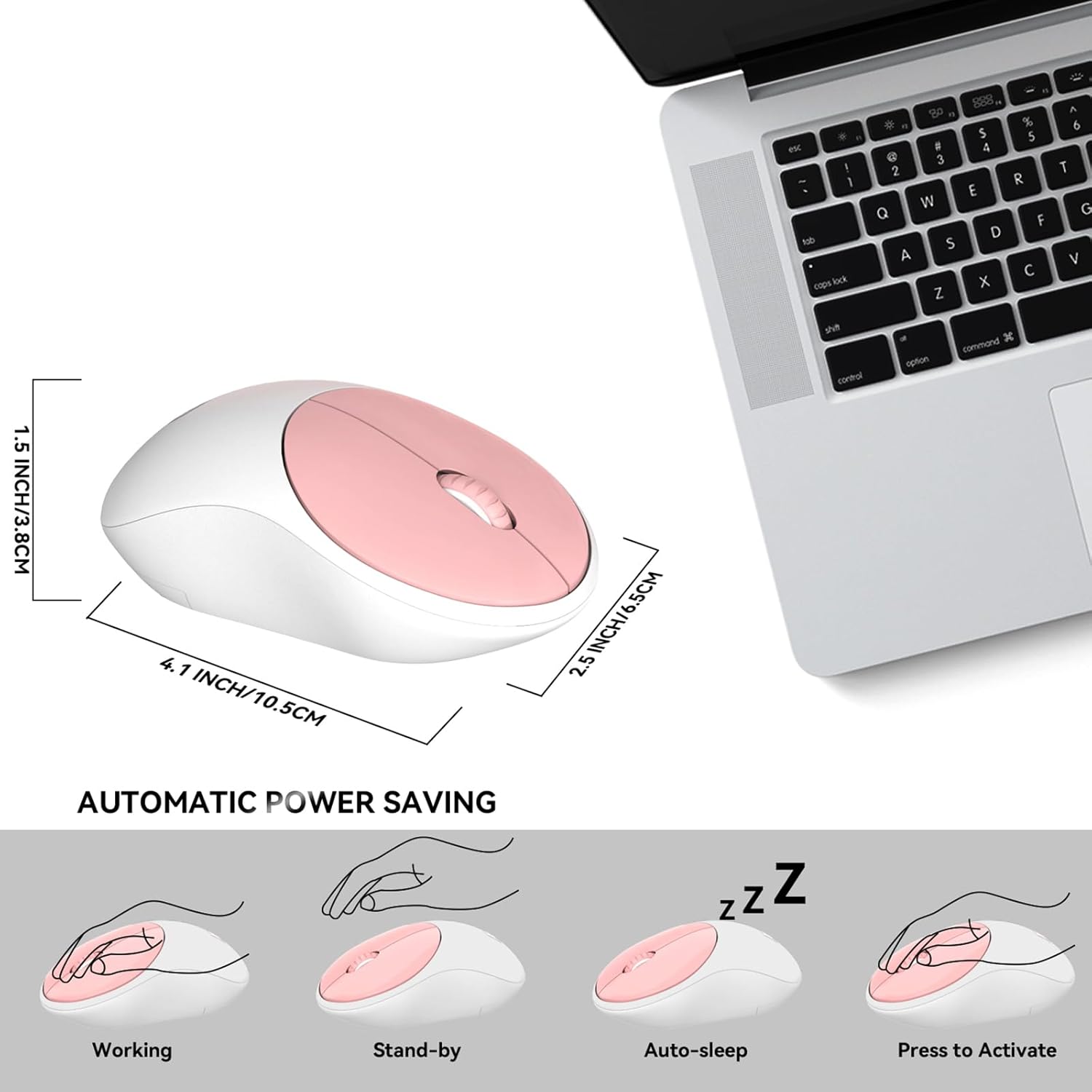 FD iK6630 Wireless Keyboard and Mouse Combo - 2.4GHz USB Cordless, Cute Round Keys, Quiet and Slim Set for Laptop, Computer, TV, and Mac - Salmon Pink & White