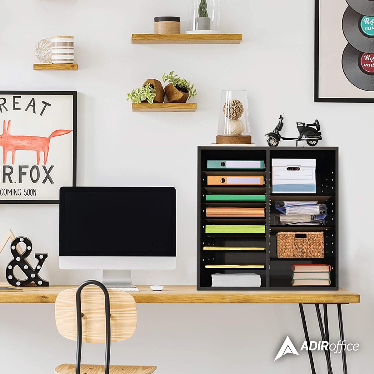 AdirOffice Wooden Adjustable organizerserature Organizer, 16 Compartment Office Mailbox, or Classroom Literature Organizer, Black