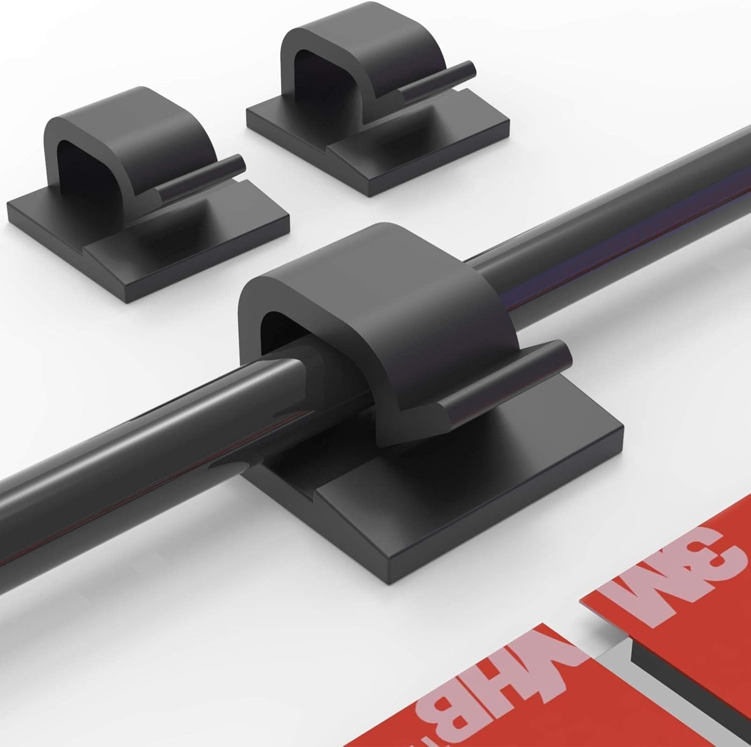 Cable Clips 60pcs with Strong Adhesive Tapes,Wire Holder Organizer Cord Management for Car, Office and Home (Black- CC05(60PCS))