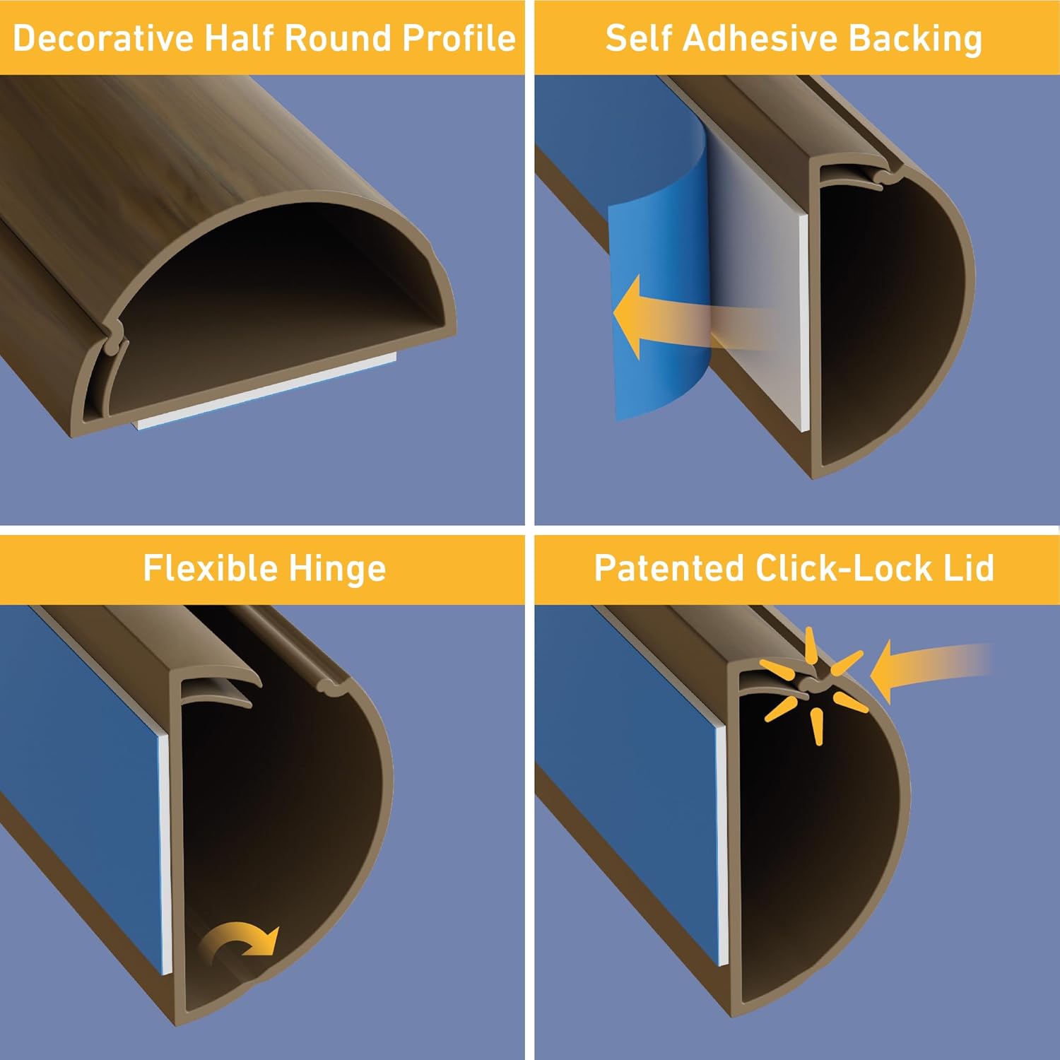 - Stylish design! D-Line on wall cord covers have a decorative half round profile, for a superior finish. Great for hiding wall mounted TV wires, with the profile subtly blending with decor. D-Line Raceway is also used for organizing cords above baseboards, with D-Line appearing as the natural top section of the baseboard. Longer 39-inch lengths supplied per pack, require less connectors versus shorter lengths, to ensure a neat appearance can always be maintained.