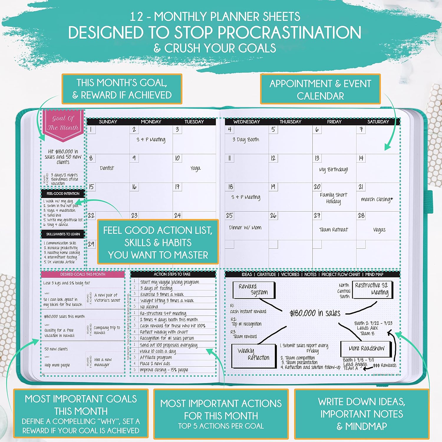 - INCREASE PRODUCTIVITY AND HAPPINESS - This is a deluxe life goal planner showing you how to become the best possible version of yourself on a mental, physical & interpersonal level using the law of attraction vibration guide. This planner is a daily planner, monthly planner, weekly planner, productivity planner, goal planner, business planner, to do list planner, planner notebook & gratitude journal all-in-one.
