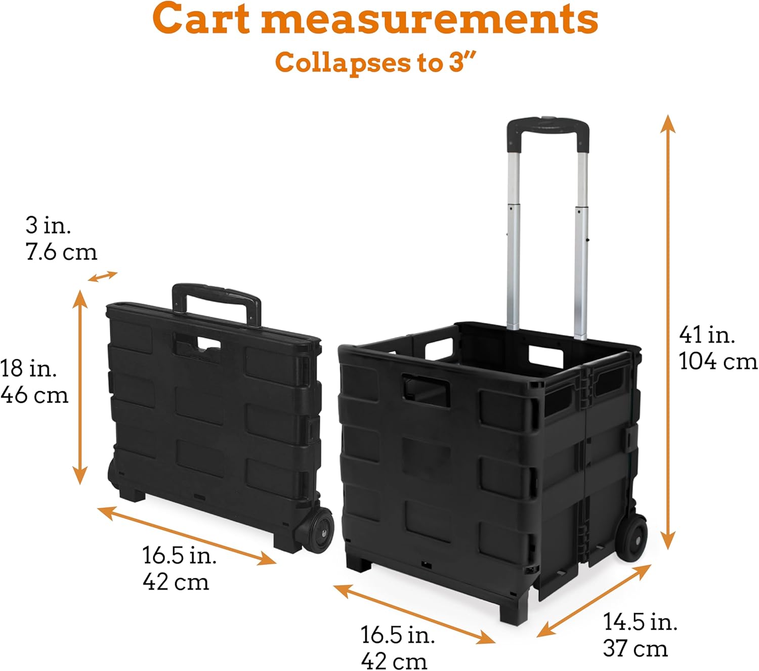 - š“ LARGE CAPACITY UTILITY CART: Super Strong Heavy Duty Construction- Holds Up To 80 Lbs: Collapses To 3" When Folded Flat / 16.5" When Fully Expanded
