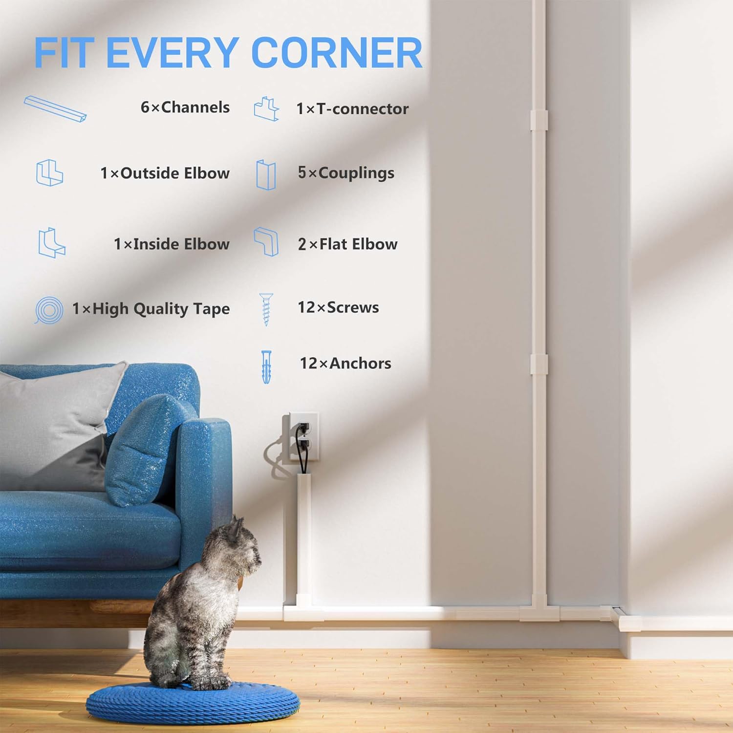 - Meets the Needs of Most Households Cable Management: The large-size cord hiders are ideal for hiding 3-4 TV/Audio/Network wires, such as HDMI wires, Cat6 Ethernet wires, optical wires, and USB wires. The Delamu snap-on design cord covers wall kit has 6 cable hiders and different connectors to fit each corner