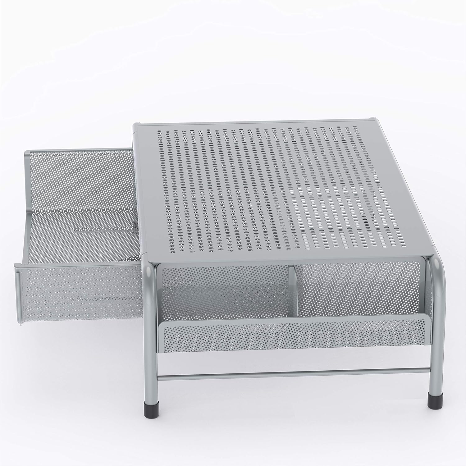 Simple Houseware Metal Desk Monitor Stand Riser with Organizer Drawer, Silver