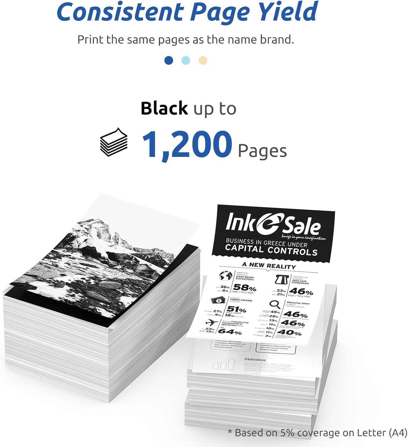- Estimated page yield: 1200 Pages per Black cartridge 5% coverage (Letter/A4)