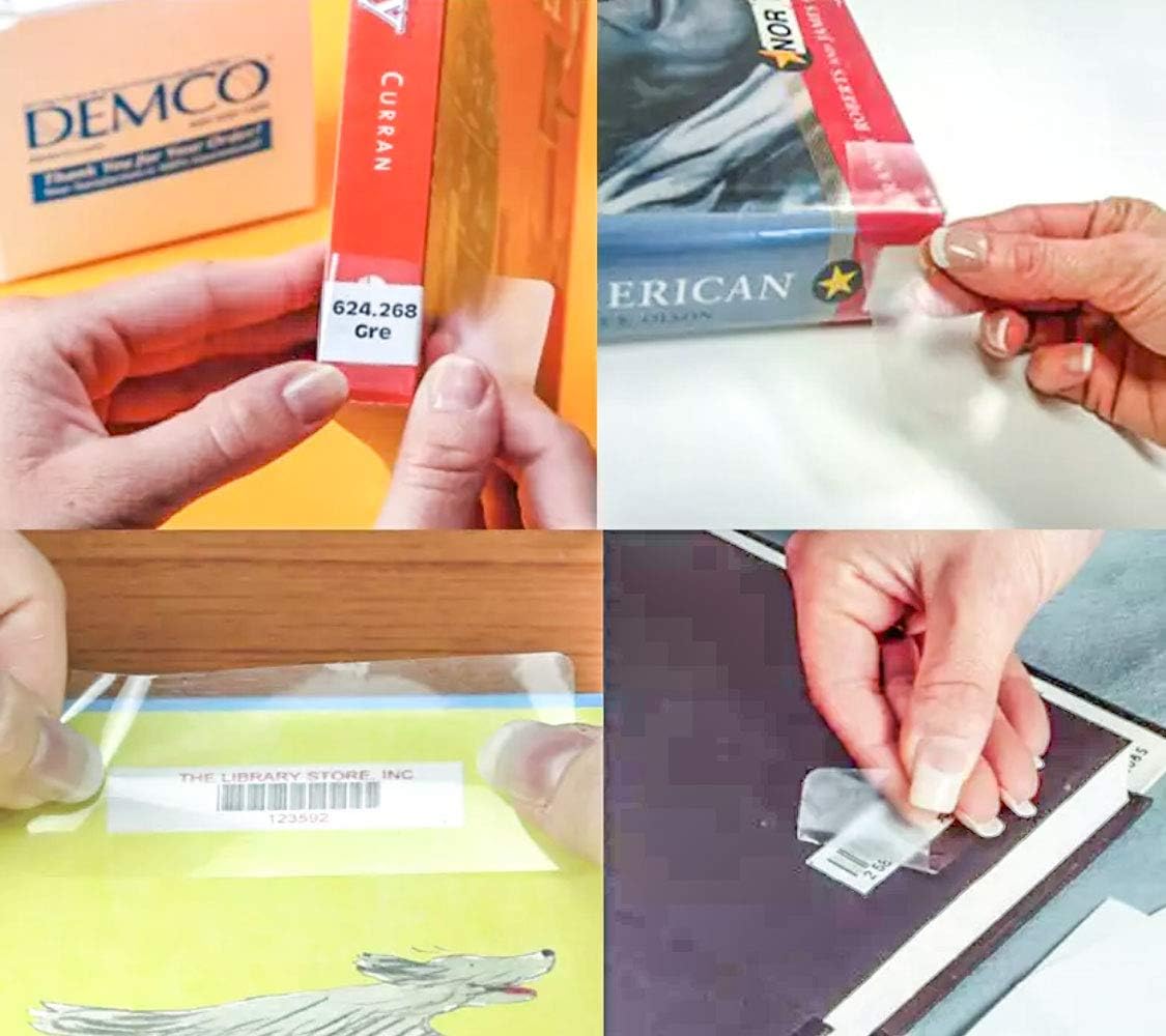 - Clear Adhesive Label Protector features rounded corner design that prevents lifting from book's surface and protects bar codes keep the edges from curling allowing accurate scanning.