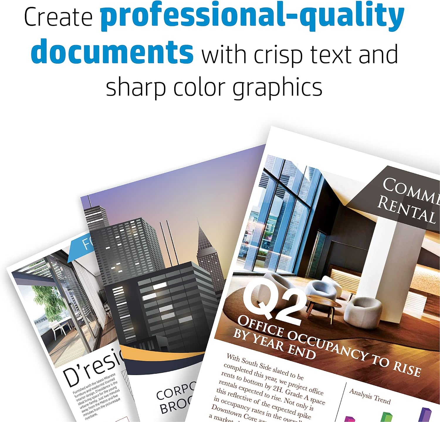 - Print crisp, black text and sharp color graphics on professional paper