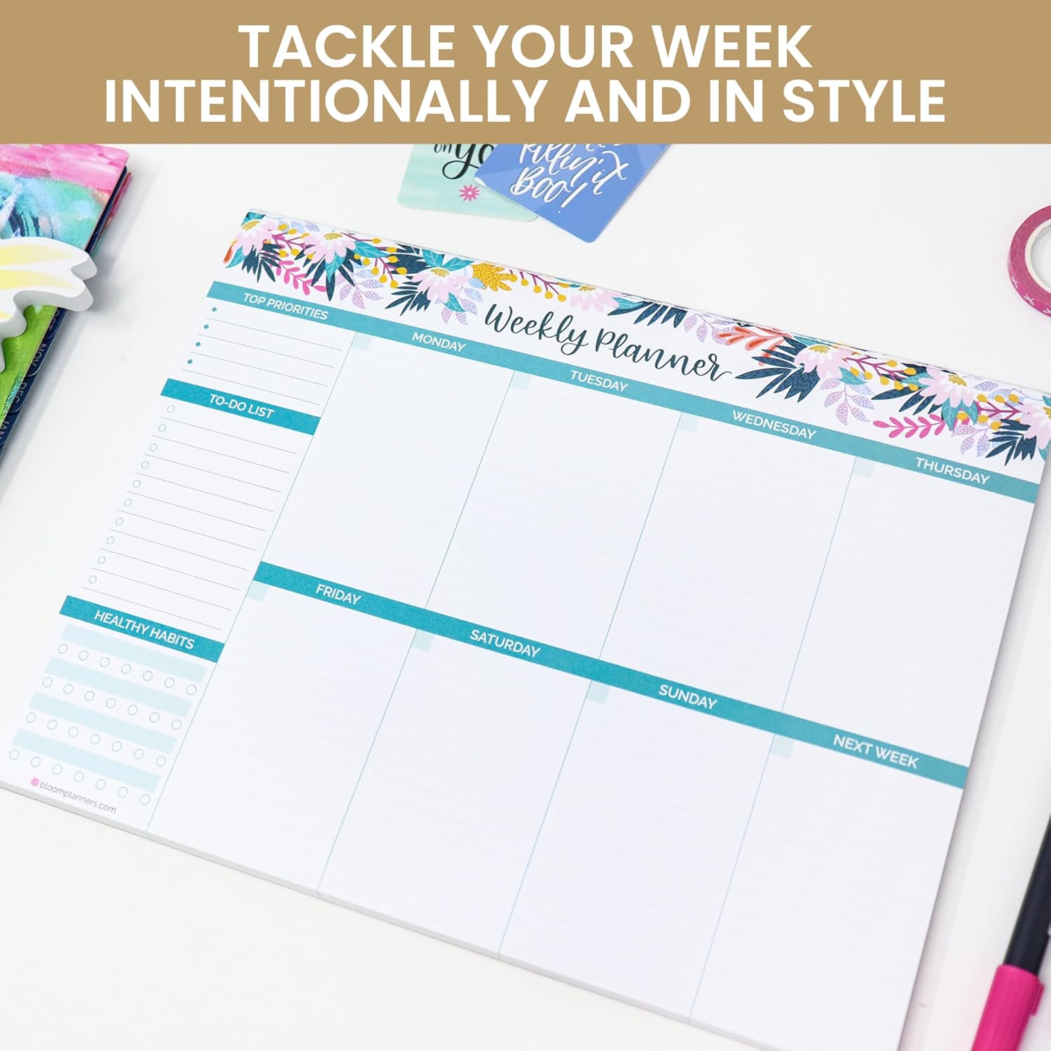 bloom daily planners Horizontal Weekly Tear-Off To Do List Planning Pad - Undated Notepad Organizer & Healthy Habit Tracker - 8.5ā x 11ā - Floral