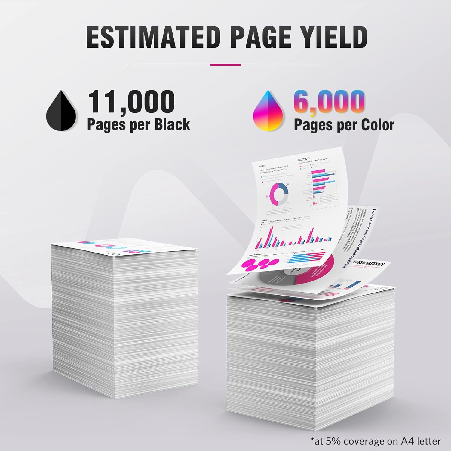 - High Yeild: 11000 pages per Black ink cartrige , 6000 pages per color ink cartridge on 5% coverage (letter/A4)