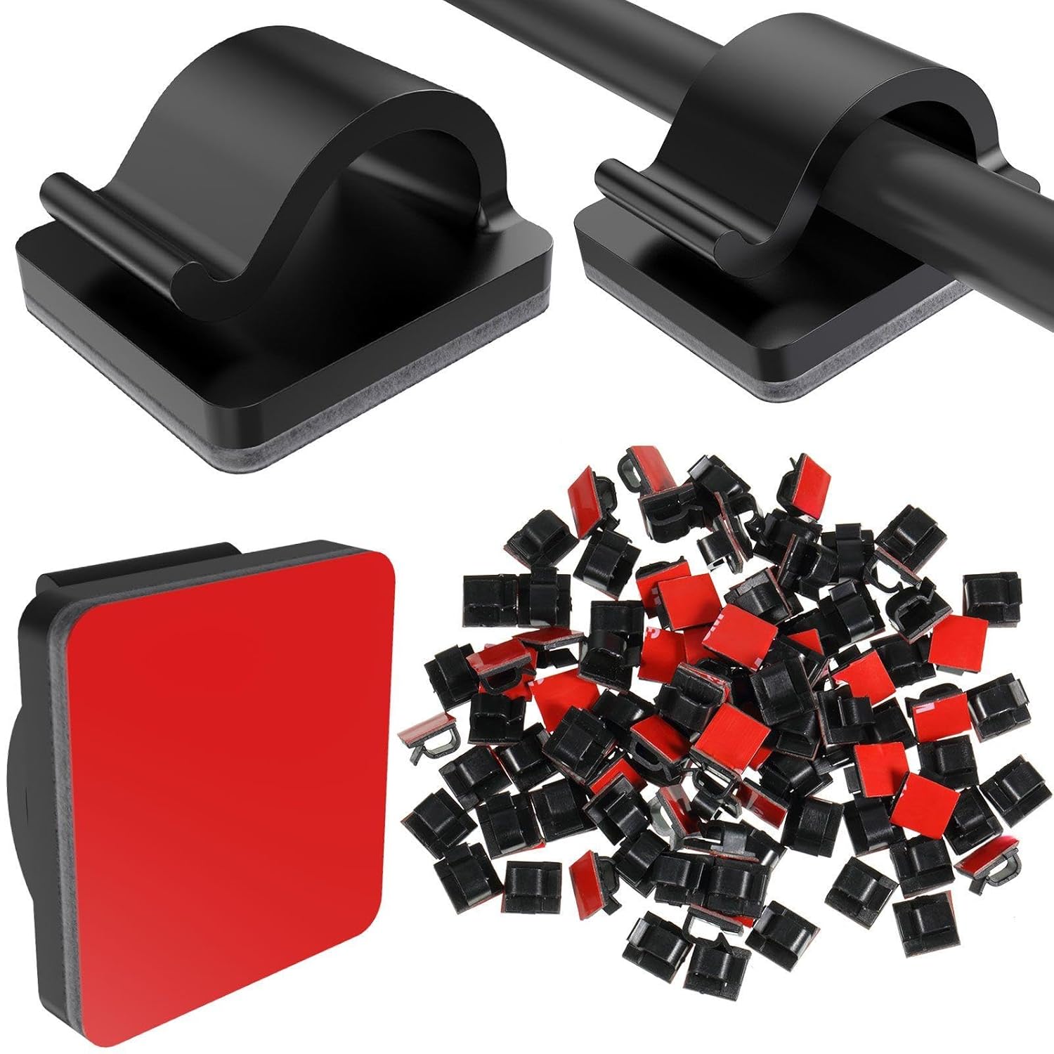 - Adhesive Cable Clips: made of quality material, these decorative adhesive hooks are sticky, easily peel off backing, which make our adhesive wire clips sturdy and durable; Our cord clips package comes with 100 pcs cable clips, you can use this to organize your cable, cord, wire or hanging string lights according to your needs