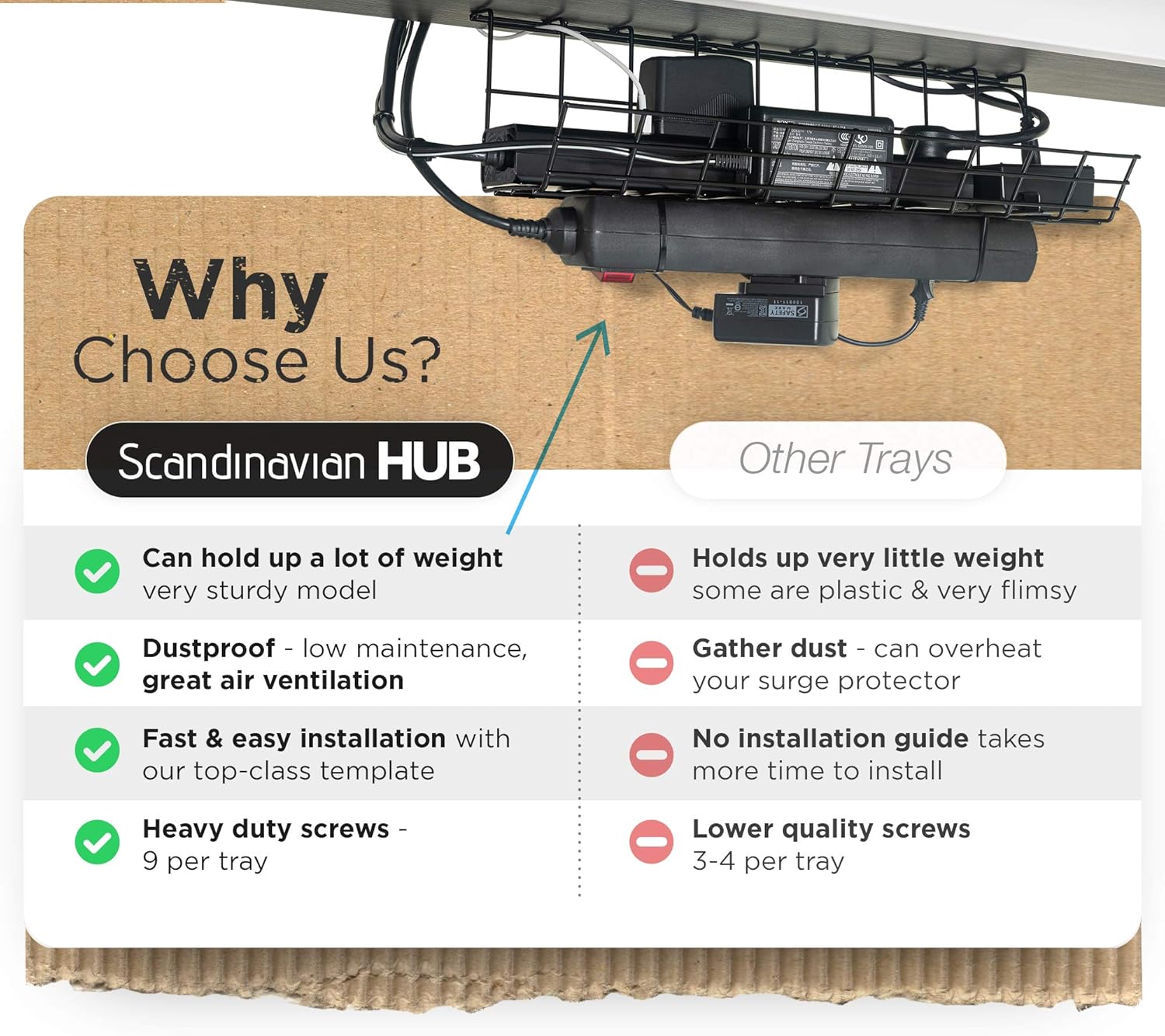 - Easily Mounted: The under desk cord organizer tray installs to the bottom of any wood, MDF, or particleboard desk; You can even mount it on the wall and use it as a cable management wall unit; Not suitable for installation on paper honeycomb-filled desks like some IKEA office desks - Linnmon and Skarsta