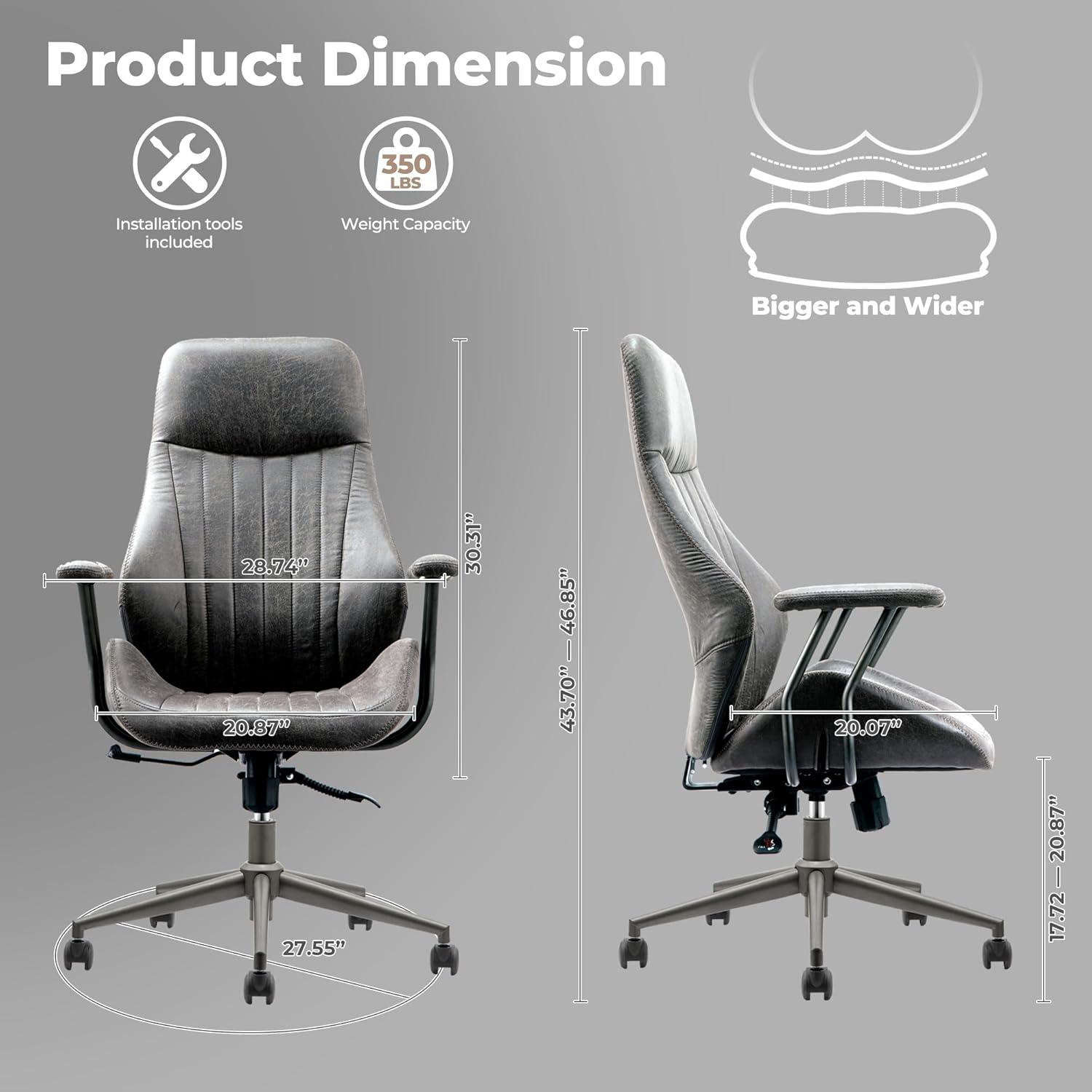ovios Ergonomic Home Office Chair, Mid-Century Modern Faux Leather Chairs with Padded Armrests, Comfy High Back Swivel Rolling Executive Computer Armchair (Dark Grey, Suede Leather)