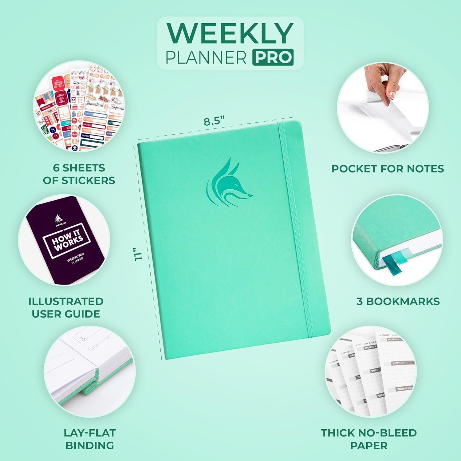 Clever Fox Planner PRO – Weekly & Monthly Life Planner to Increase Productivity, Time Management and Hit Your Goals, 8.5x11″ (Emerald)