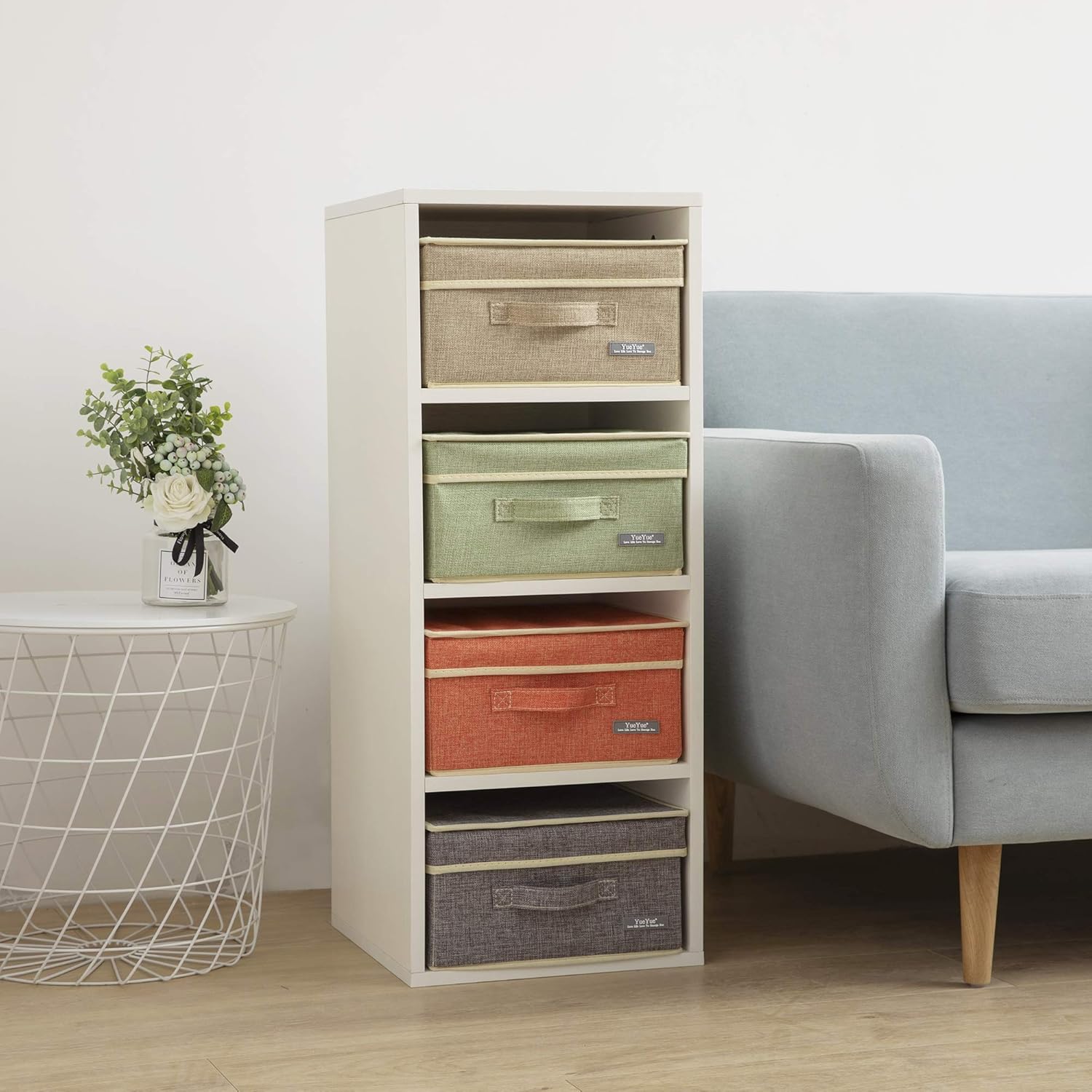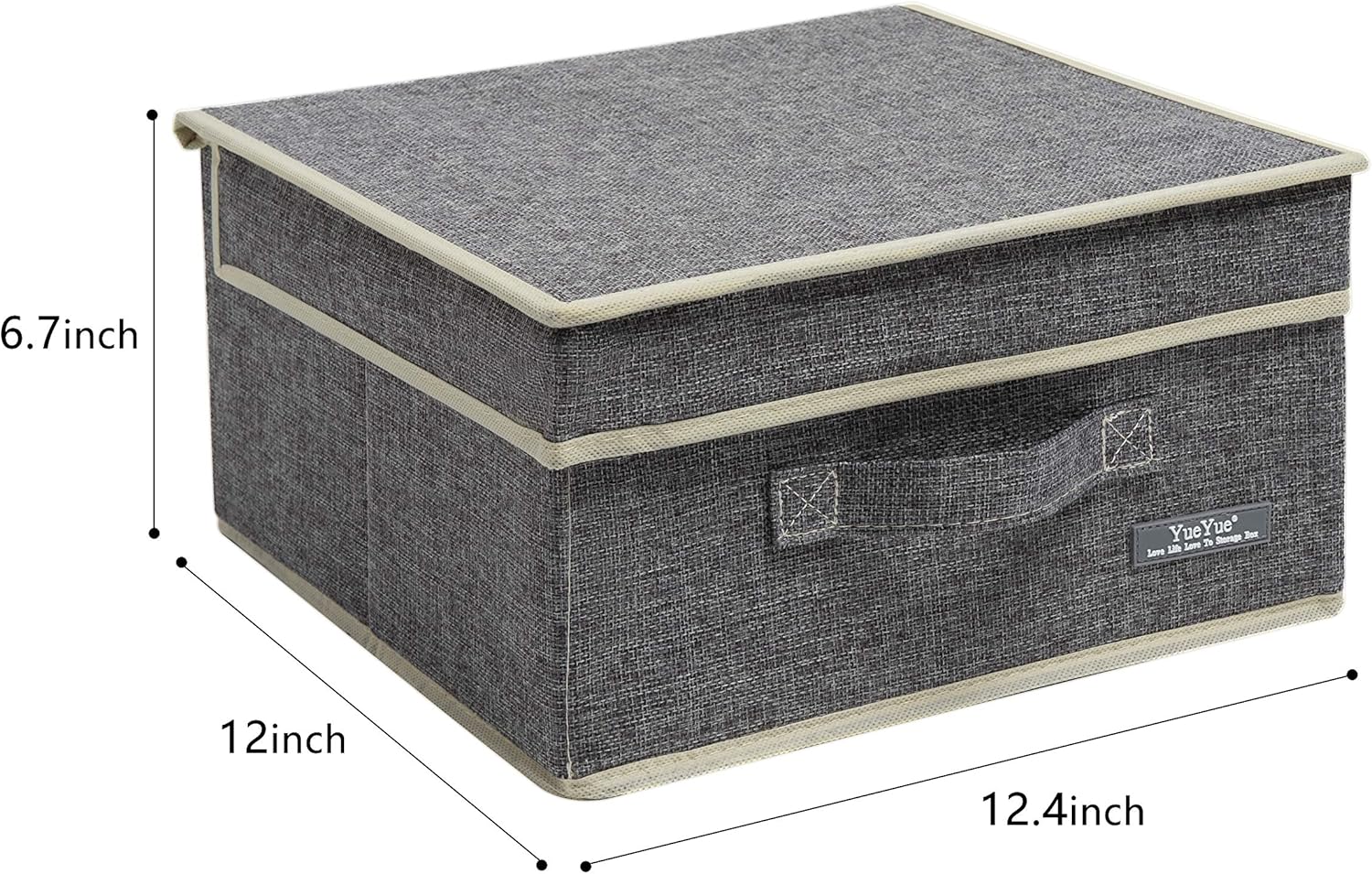 - 【SENIOR QUALITY】YueYue Small Fabric Storage Box With lid , reinforced by Linen pattern fabric and durable Cardboard(2mm thickness), its breathable , wear resistance, excellent sealing, durable character, protection of your things from dust ,can meet your long terms storage needs.