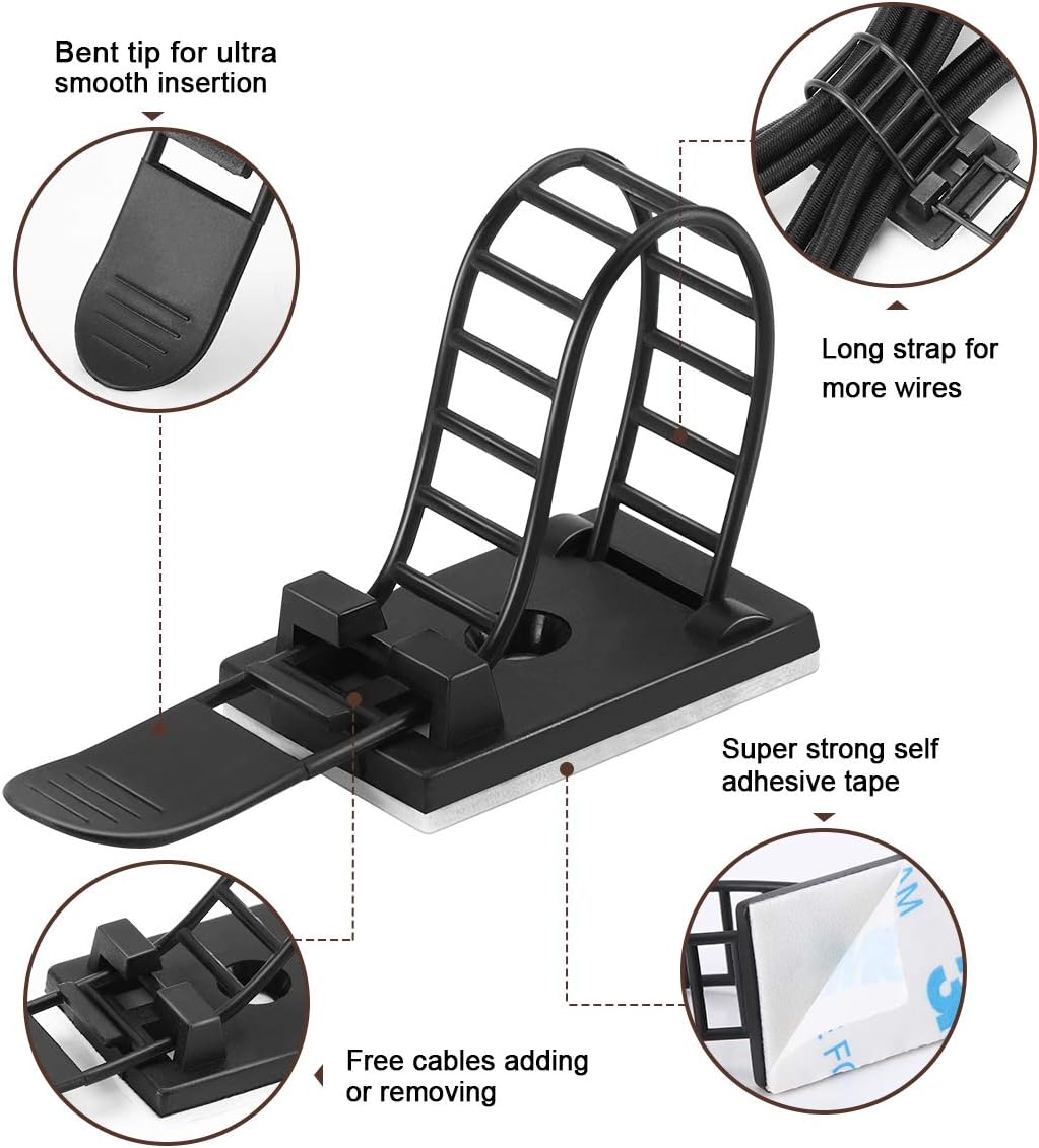 - 【WIDE APPLICATION】- Self adhesive cable management clips can be used for power cords, charging cables, USB wires, electronic cables, festival lights, cars and so on. It’s a good helper to save space and route the wires neatly and unobtrusively in your home or work place