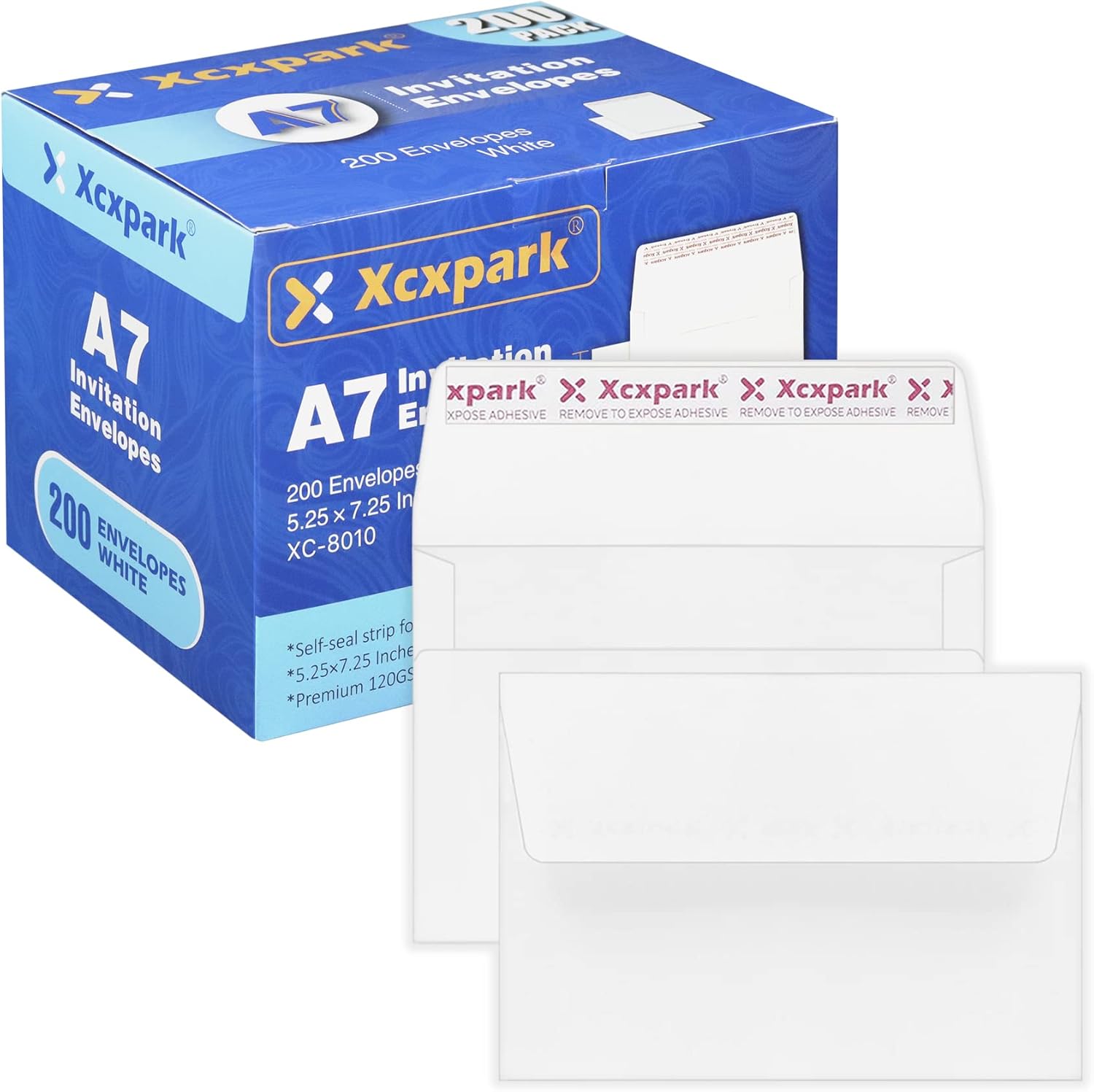 200 Qty Printable A7 Invitation Envelopes 5.25X7.25 inches Cards, Self Seal 120GSM white Paper Envelopes for Invitations, Papers, Photos, Documents, Wedding, Baby Shower, Easy to Seal