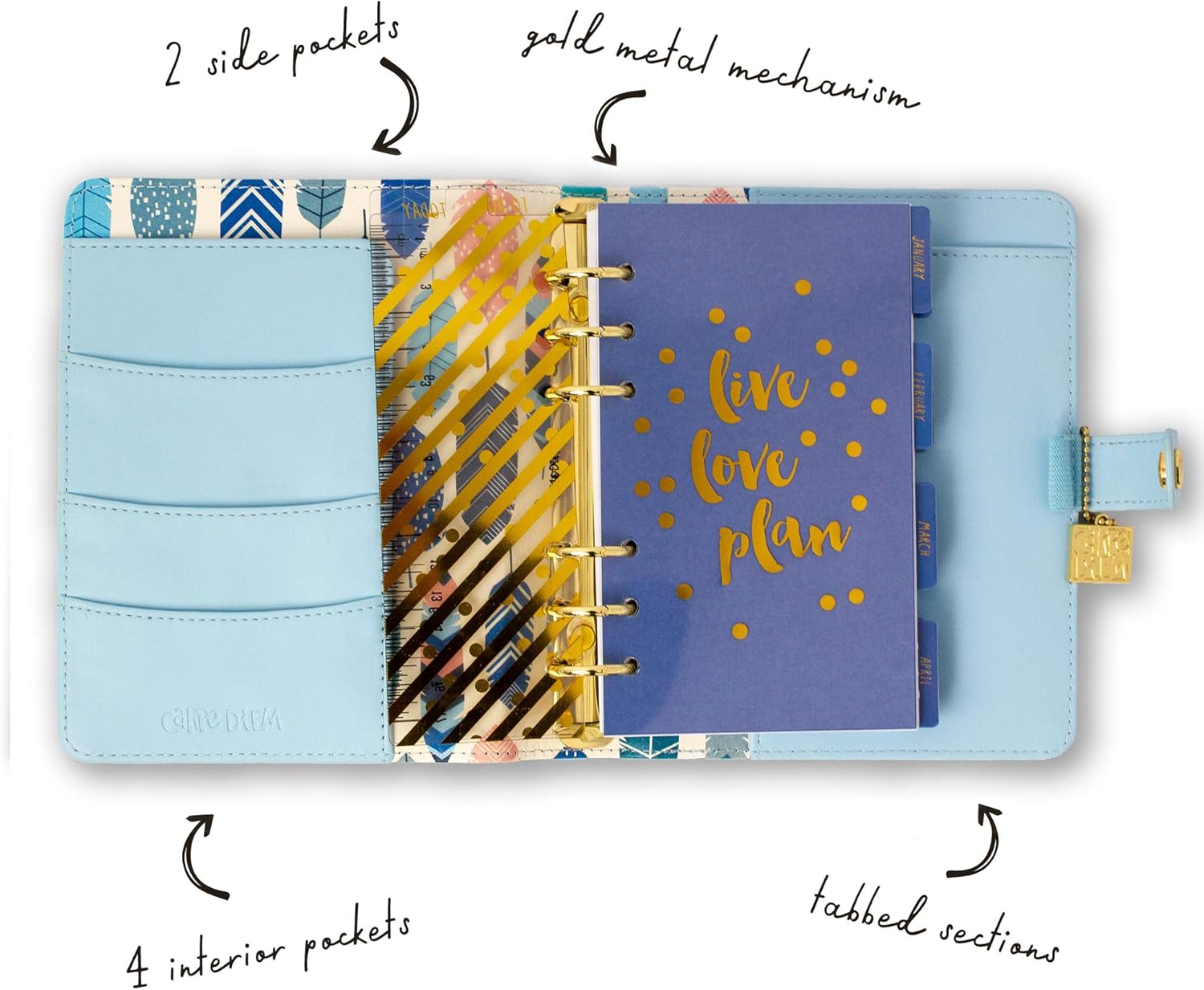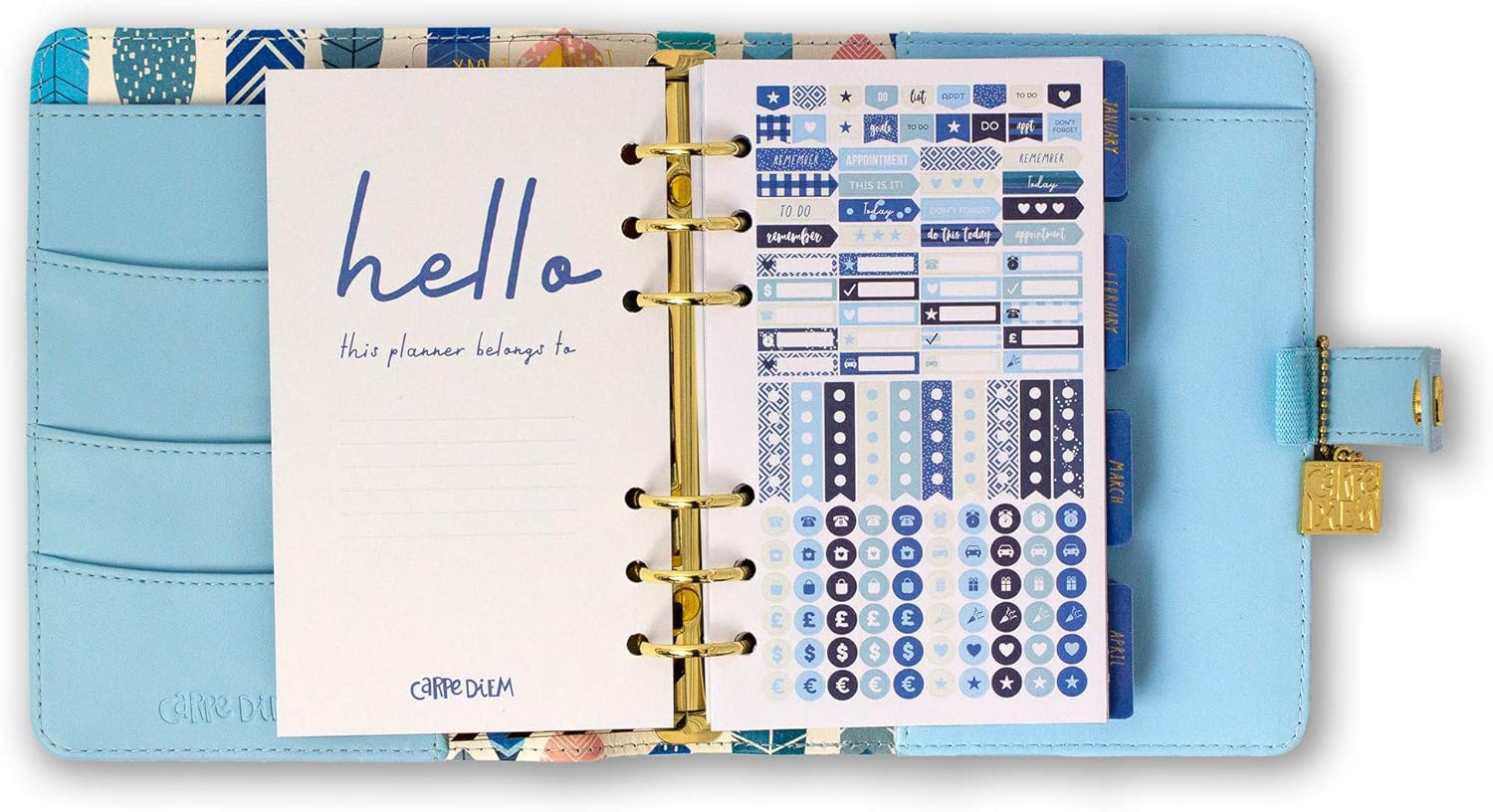 Pukka Pad, Carpe Diem Personal Planner - Soft Cover Binder with Weekly, Monthly Undated Inserts in Tabbed Sections, Interior Pockets and Sticker Sheets - 8 X 7.5 X 1.4 Inches, Sky Blue