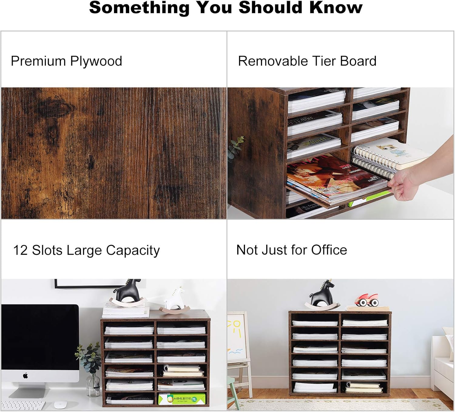 TQVAI Wood Adjustable Literature Organizer Desktop File Sorter Mail Center Paper Storage Cabinet Home & Office Mailbox School Classroom Keepers, 12 Slots Compartments, Archaize