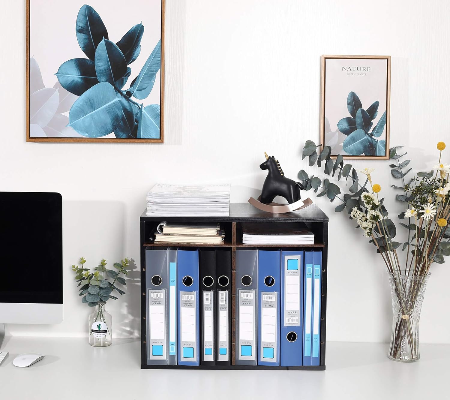 TQVAI Wood Adjustable Literature Organizer Desktop File Sorter Mail Center Paper Storage Cabinet Home & Office Mailbox School Classroom Keepers, 12 Slots Compartments, Black/Archaize