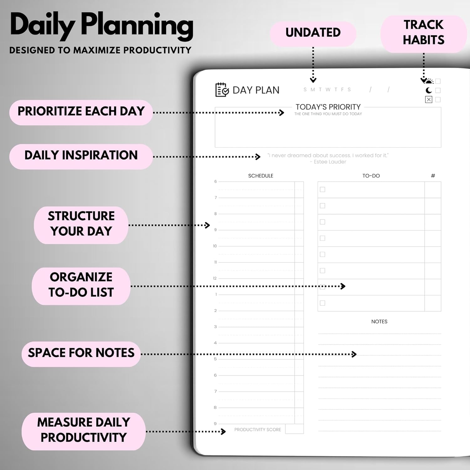- START ANYTIME & STAY CONSISTENT – With 27 weeks of undated daily planning pages, plus weekly and monthly review sections. You can begin anytime, improve your time management and build a consistent planning habit on your own terms.