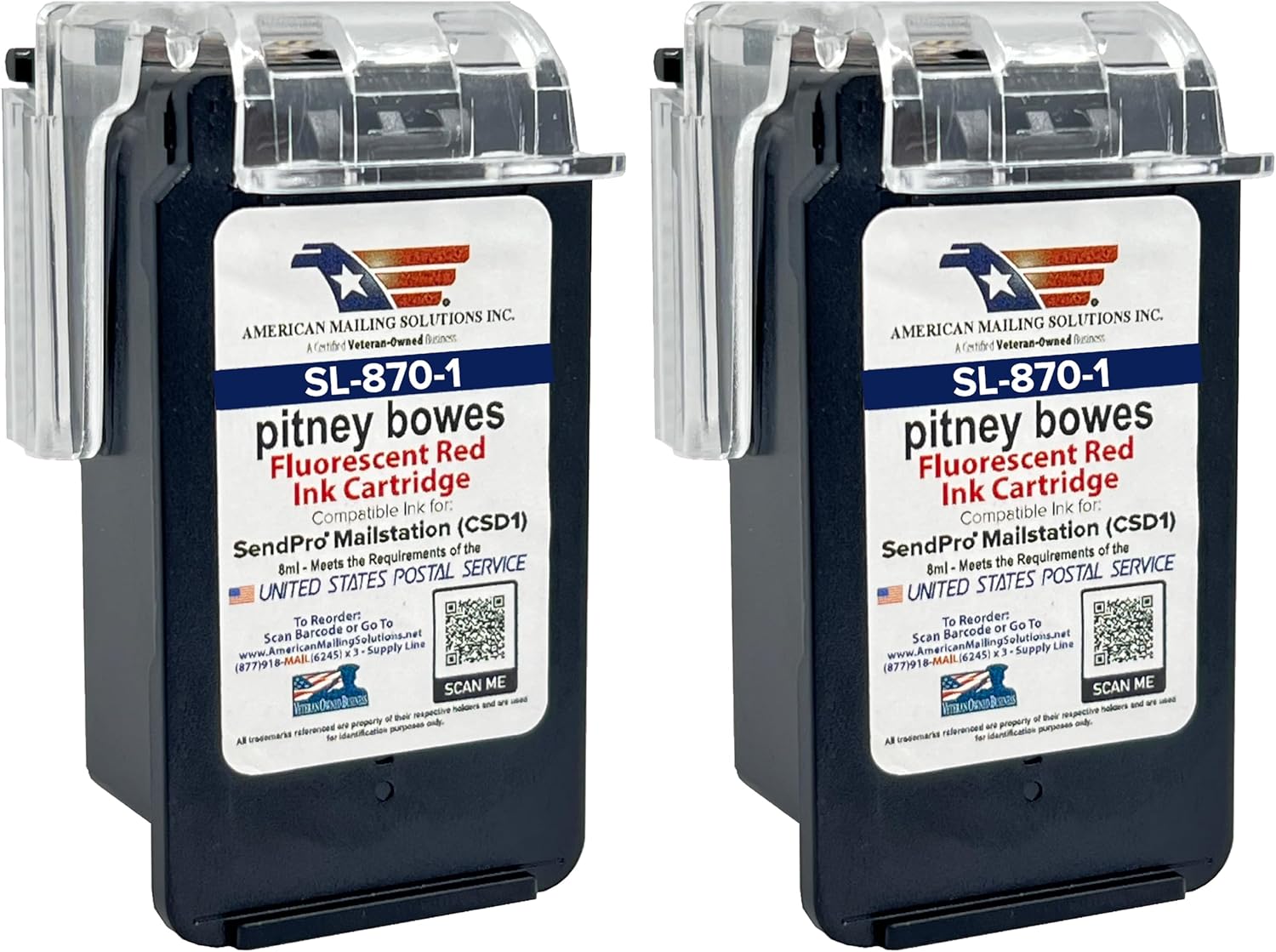 - Our PB SL-870-1 ink cartridge is readable if wet with no issues, same as OEM. USPS approved and certified red fluroescent ink only from AMERICAN MAILING SOLUTIONS INC.