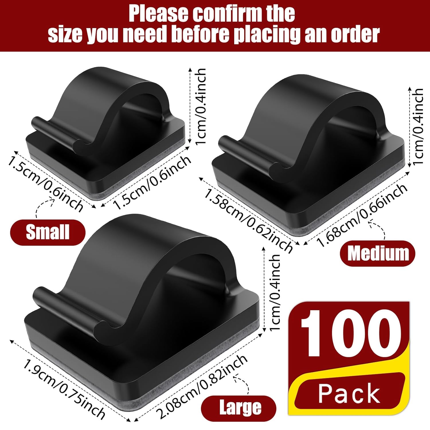 - Adhesive Cable Clips: made of quality material, these decorative adhesive hooks are sticky, easily peel off backing, which make our adhesive wire clips sturdy and durable; Our cord clips package comes with 100 pcs cable clips, you can use this to organize your cable, cord, wire or hanging string lights according to your needs