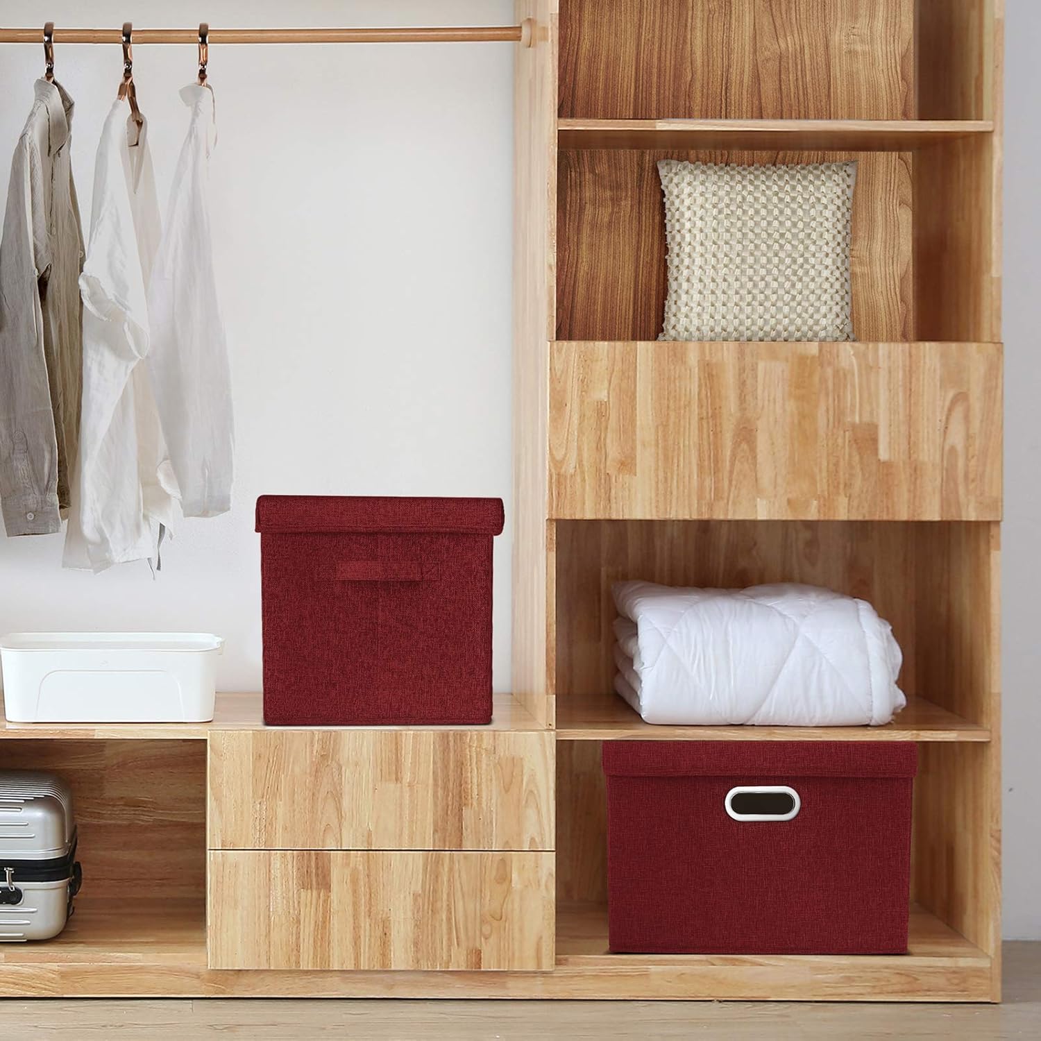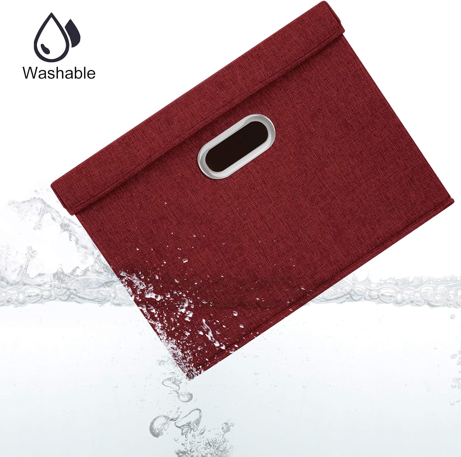 TYEERS Collapsible Storage Bins With Lids, Large Fabric Storage Boxes - 2 Pack - Red Wine