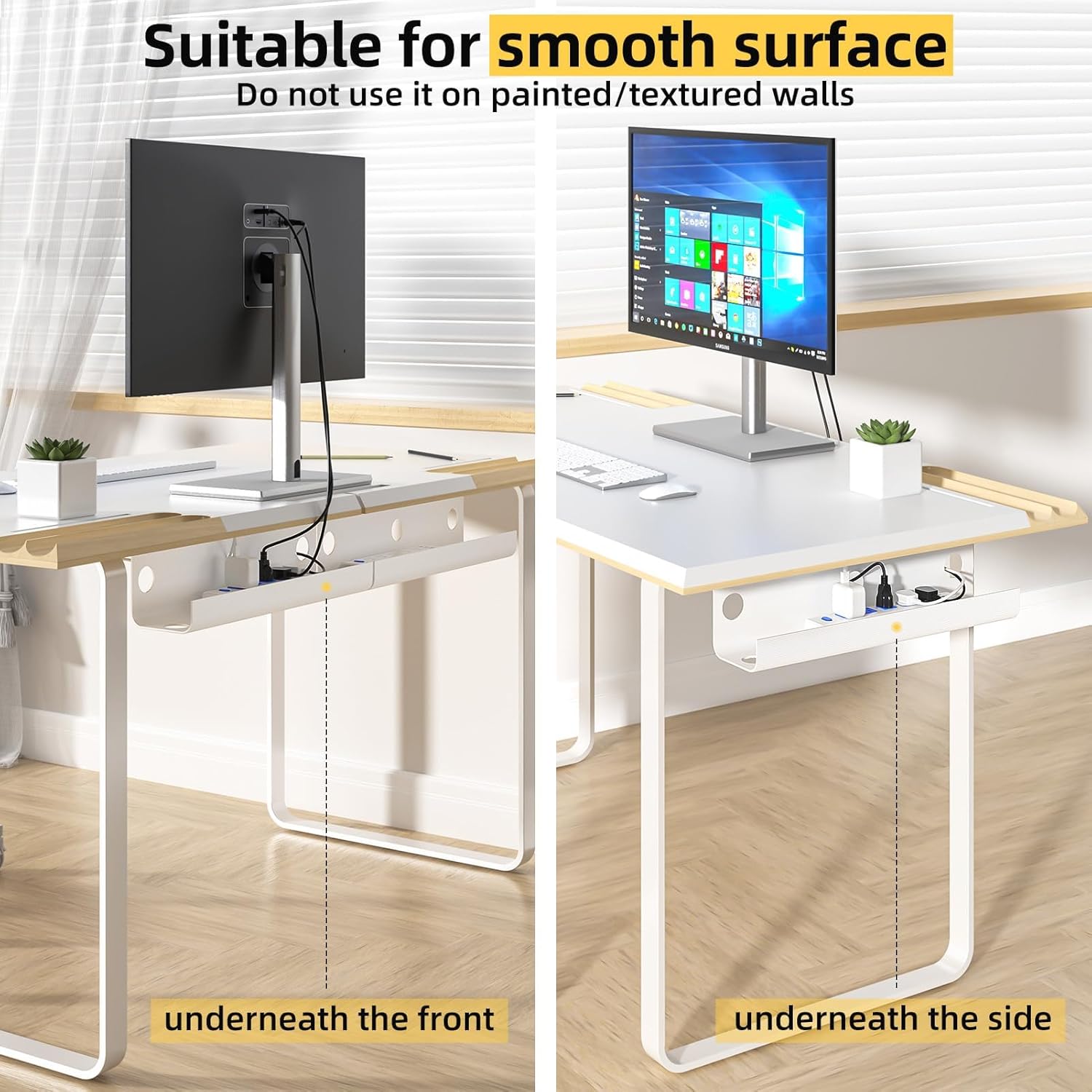 - Multiple Installation Options: As long as the surface is clean and smooth, our under desk cable management tray has the flexibility to stick anywhere you choose. Say goodbye to cable clutter and enjoy the freedom to organize your work or living space