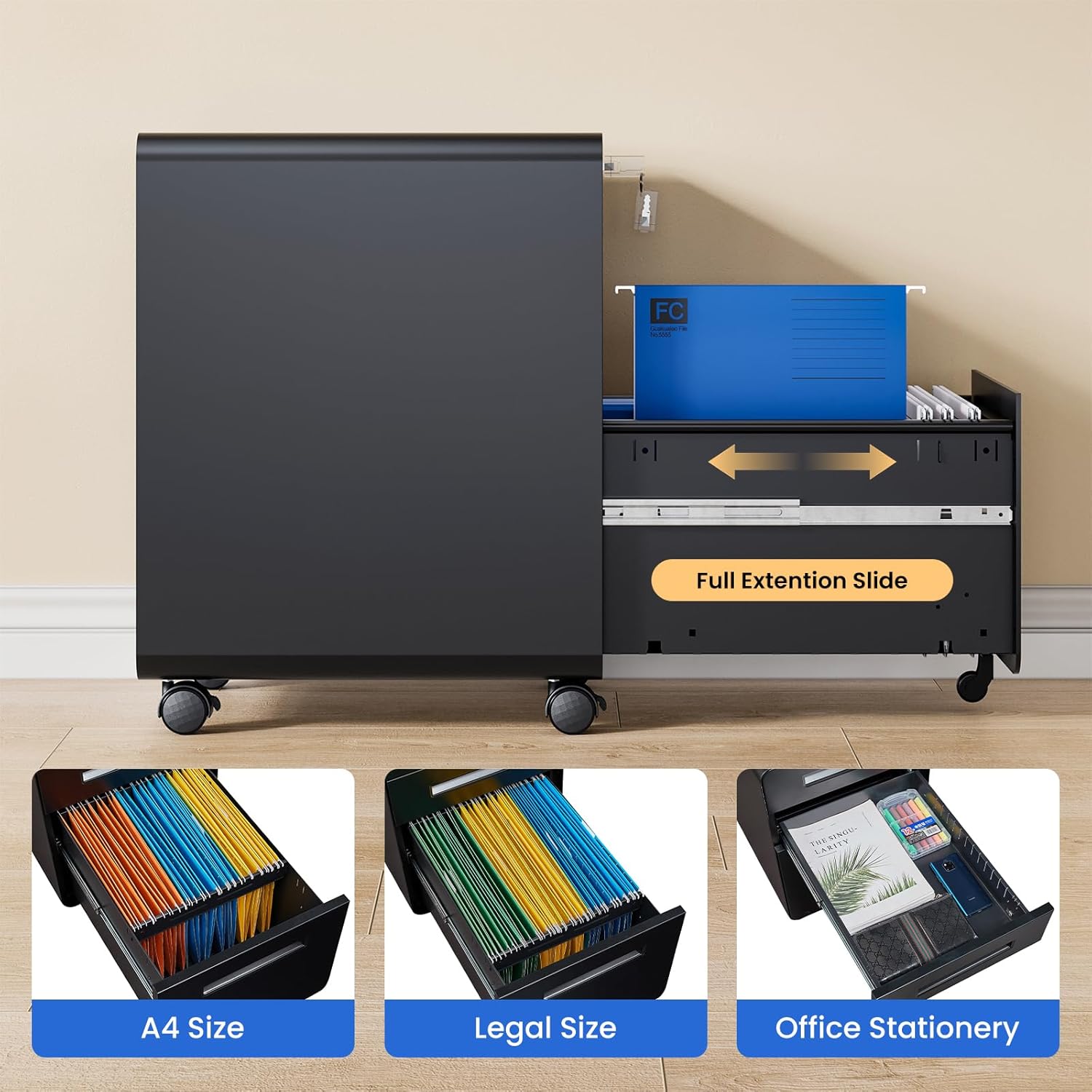- 【 Easy Assemble】: You will receive a Full-Assembled Metal File Cabinet except 5 pieces of wheels. If you encounter any problems,you can contact us at any time and we will do our best to solve it for you in 24 hours.