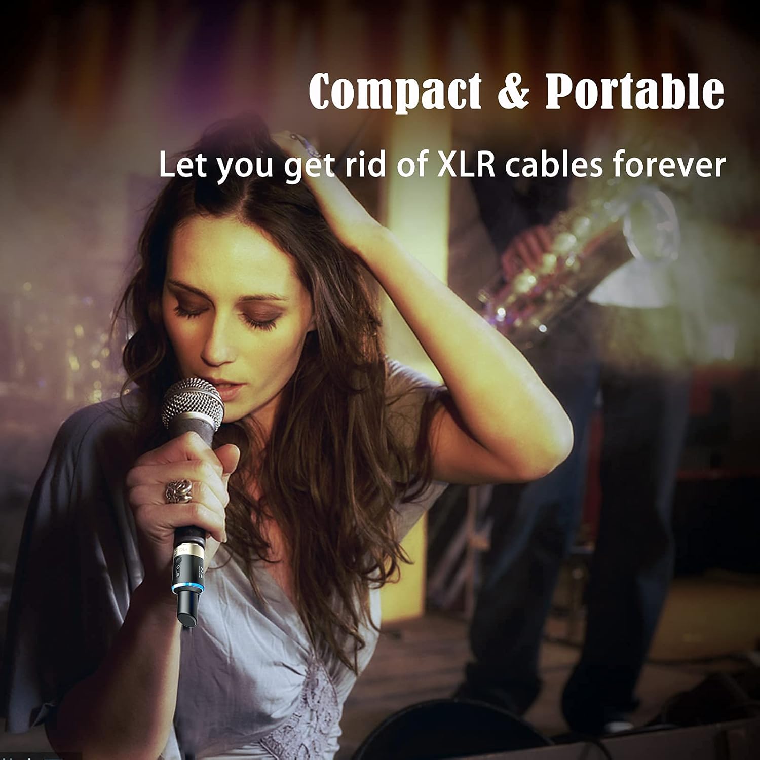 - Super Easy to Use - Small and delicate, no complicated settings, plug and play design is convenient to use. You would find that the XLR wireless transmitter and receiver works very well for you and your setup from the moment you begin to use it!