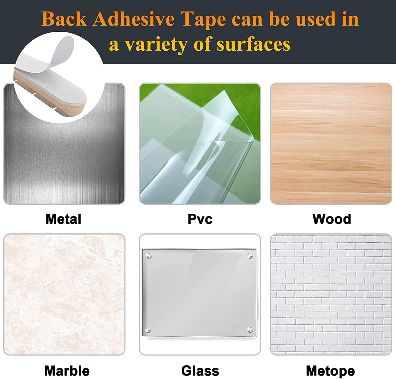 - 🔷The double-faced adhesive is very firm and long-lasting and works well in smooth and clean the surface, such as marble, plastic, wood, glass, metal, and rubber.