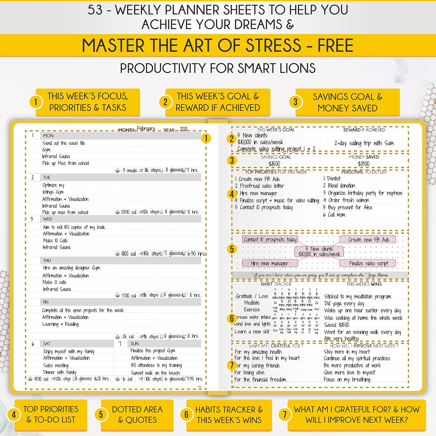 - SELF CARE PLANNER - This premium planner is undated and combines daily, weekly, and monthly planning features along with productivity, goal setting, business organization, to-do lists, notebook functionality, and gratitude journaling all in one. It includes goal-setting guidance that teaches you how to apply the law of attraction and vibration principles to become the best possible version of yourself on a mental, physical, and interpersonal level, thereby increasing productivity and happiness.