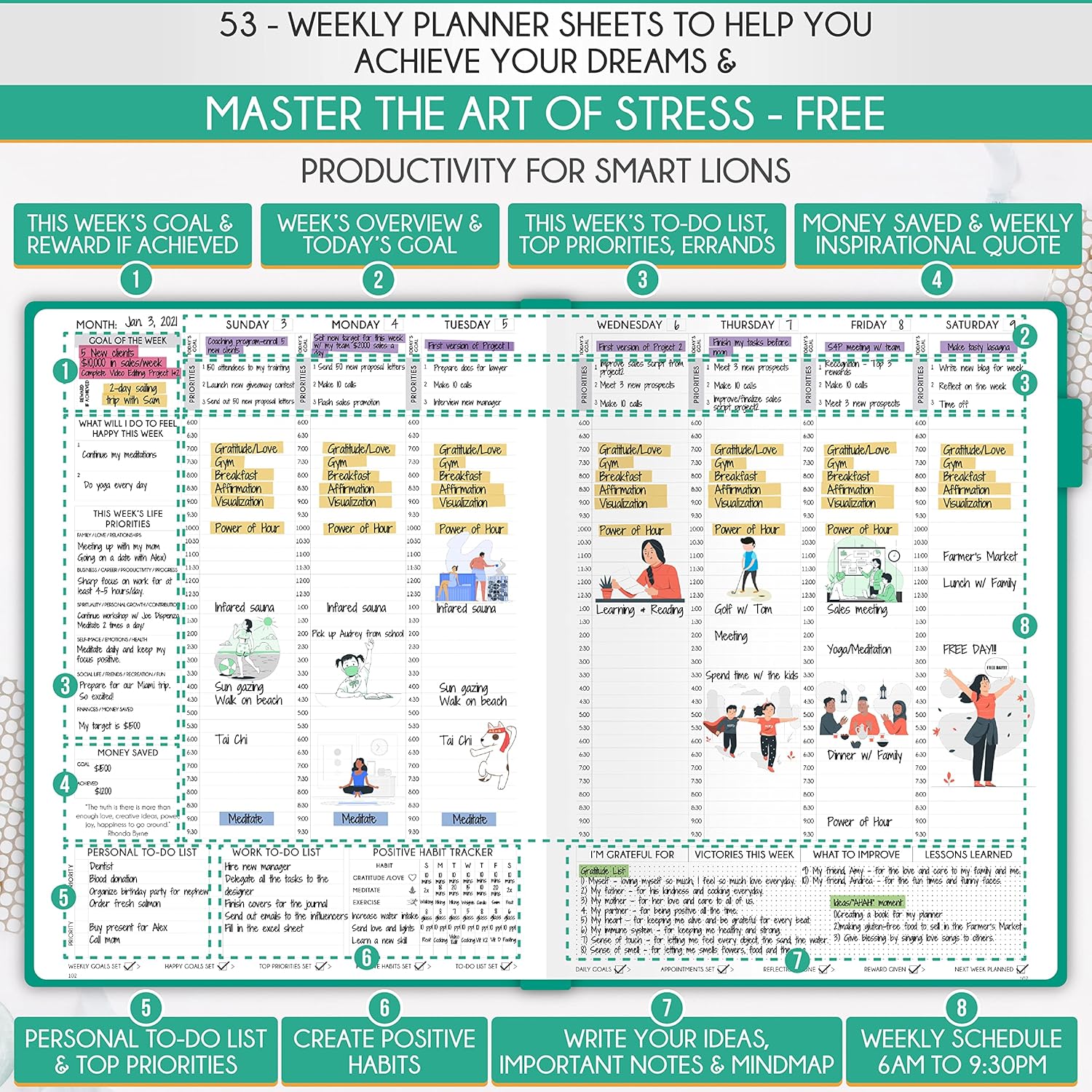 - SELF CARE PLANNER - This premium planner is undated and combines daily, weekly, and monthly planning features along with productivity, goal setting, business organization, to-do lists, notebook functionality, and gratitude journaling all in one. It includes goal-setting guidance that teaches you how to apply the law of attraction and vibration principles to become the best possible version of yourself on a mental, physical, and interpersonal level, thereby increasing productivity and happiness.