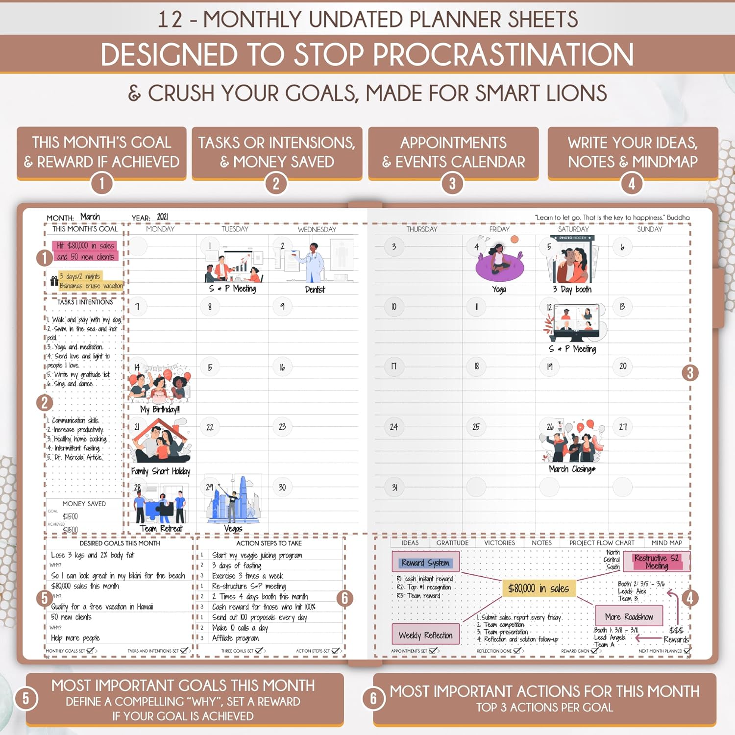 - GOAL SETTING PLANNER - Learn how to set big goals, be happy, and efficiently manage your time by adopting the same tactics used by millionaires to set and achieve them
