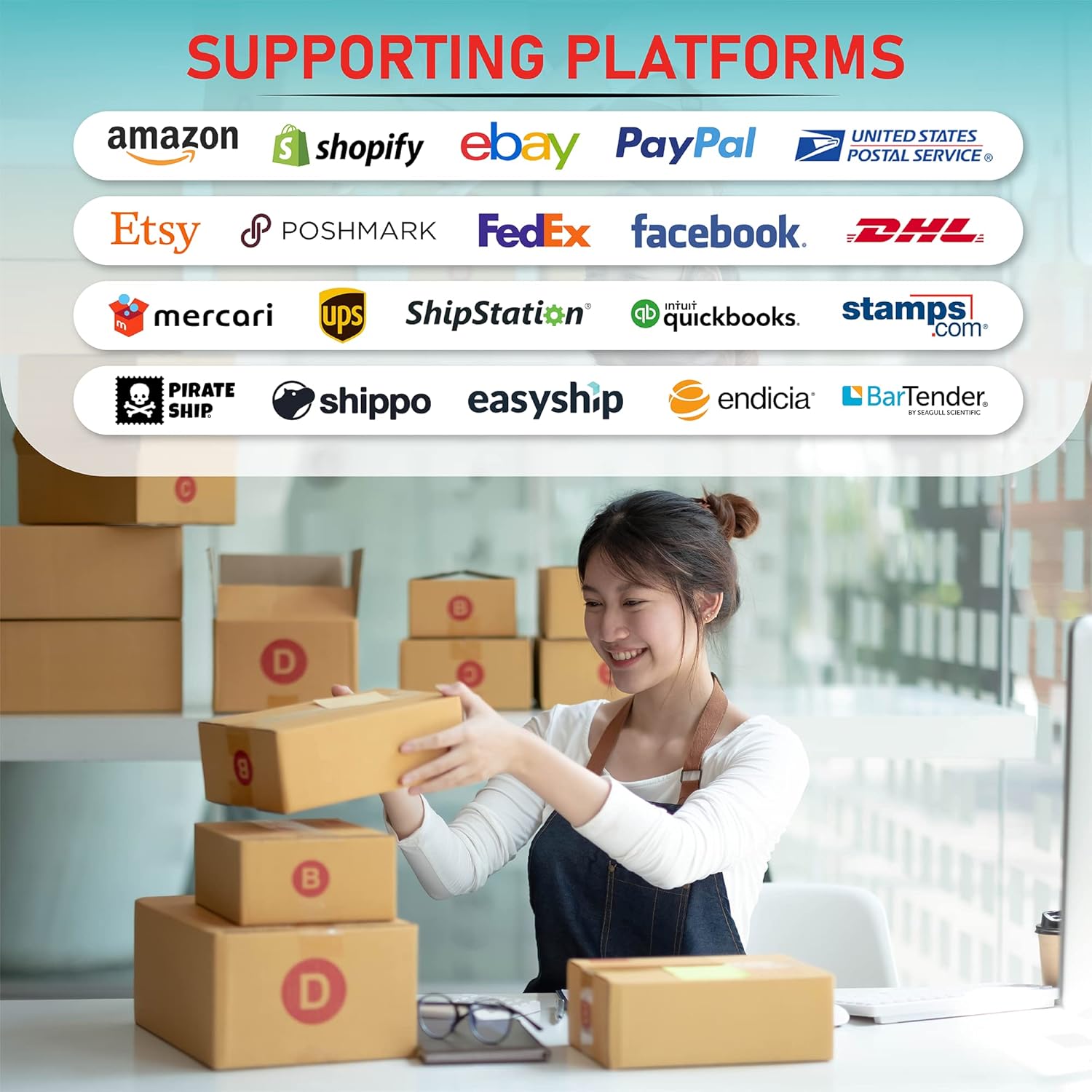 2054K-USB Upgraded 2054A Shipping Label Printer for Windows Mac Chromebook, Support Amazon Ebay Paypal Etsy Shopify ShipStation UPS USPS FedEx, fit Roll & Fanfold 4x6 Direct Thermal
