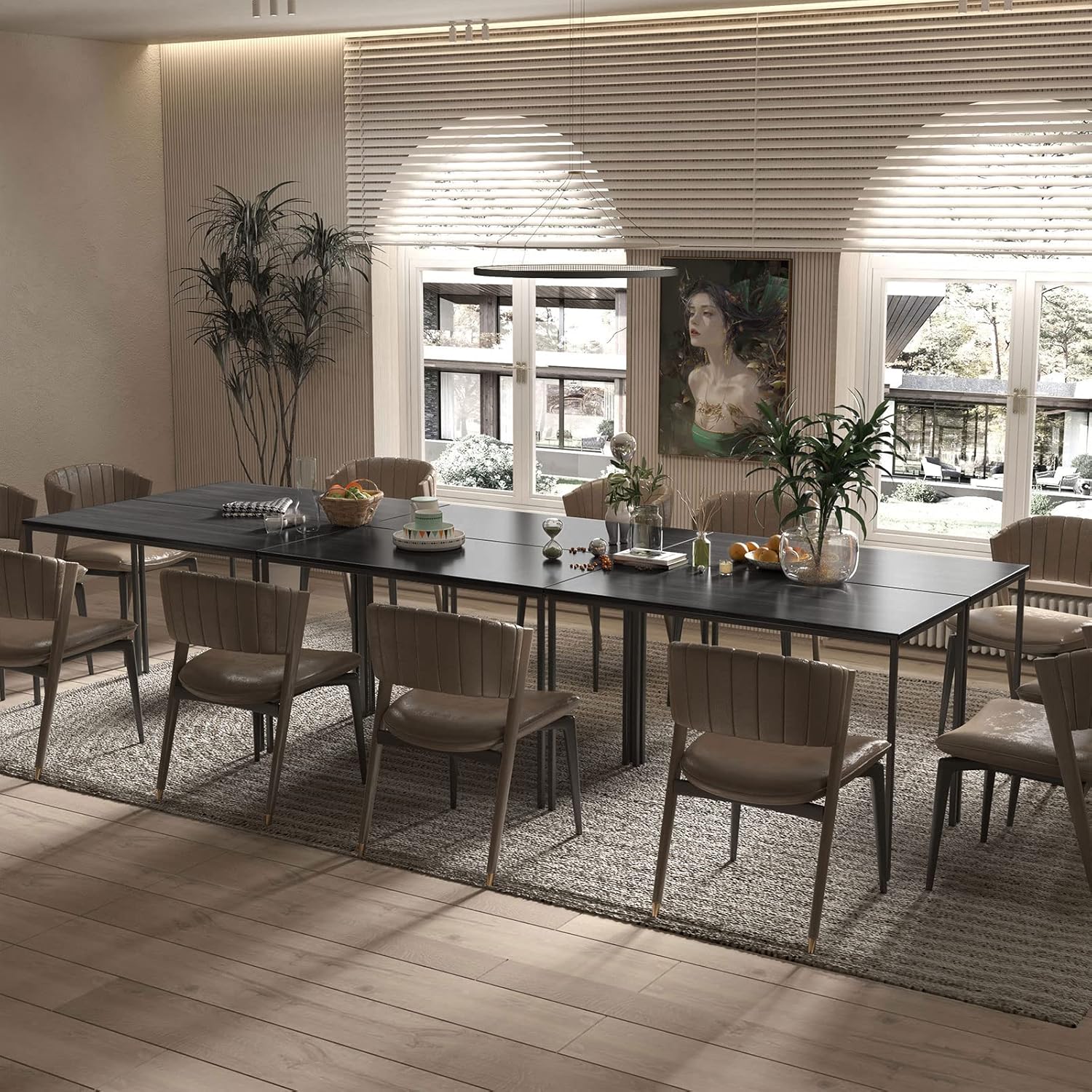 Bonzy Home Conference Tables 12ft Office Computer Desk for Meeting Room Study Writing Printer Table Save Space Design for 14 People Rustic Vintage Black 6PCS 141.6"x47.2"x29.5",Black