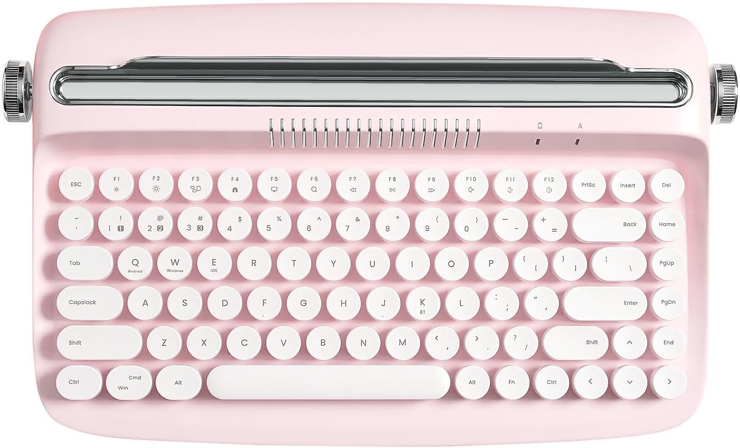 - MULTI-DEVICE WIRELESS KEYBOARD FOR MULTI OS: The wireless office retro keyboard connect via Bluetooth on Windows, Android or iOS systems,Support all kinds of devices including Pad/PC/Laptop/Tablet/Smartphone.The package include a retro wireless keyboard, an extra red keycap, 2 AAA batteries, manual.