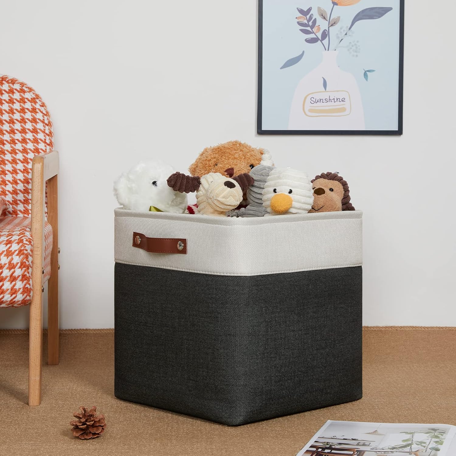 DULLEMELO Storage Baskets, 13 Inch Cube Storage Bins for Shelves Closet Nursery Toy Storage, Foldable Linen Closet Organizers Storage Baskets for Toy Closet Storage?4 Pack - 13" White&Black)