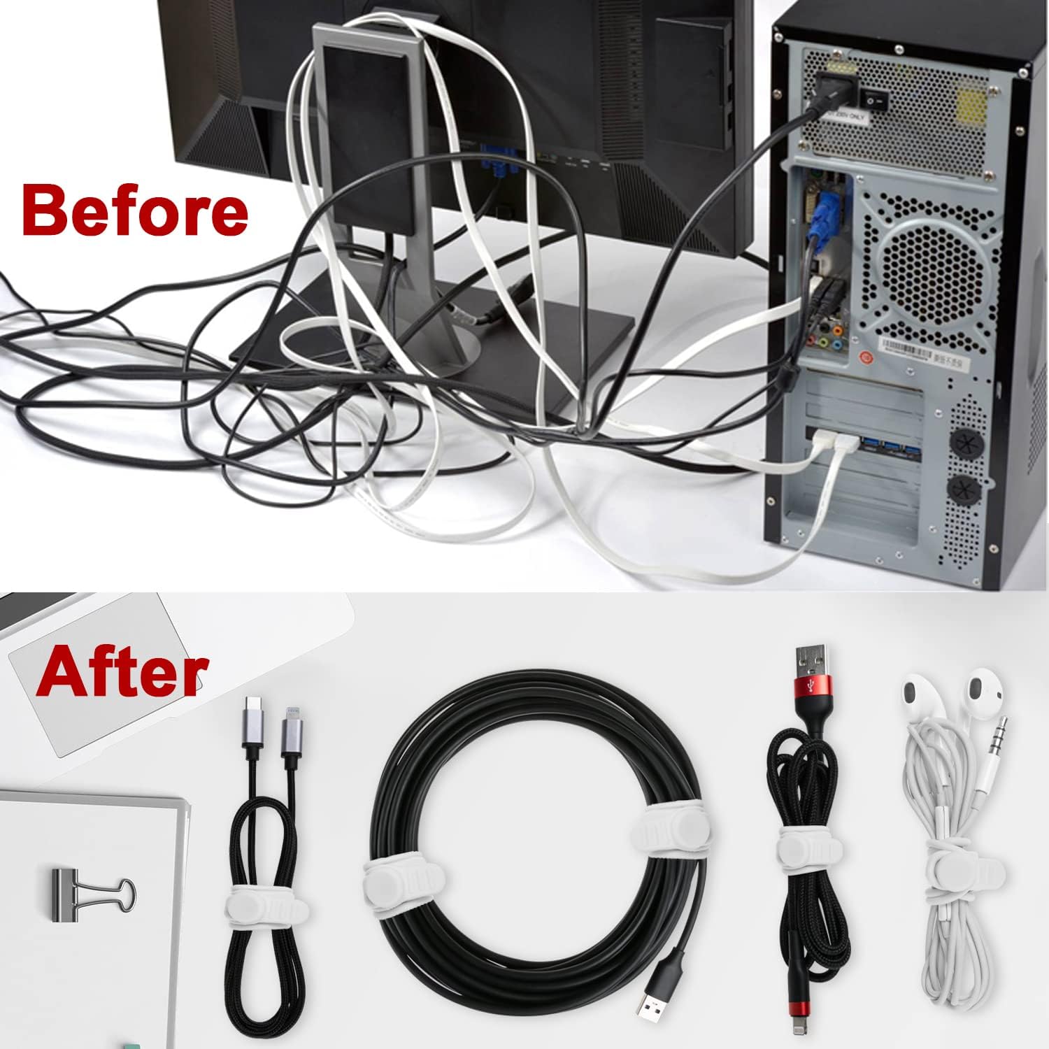 - 【Silicone Material & Multifunction】Our ties are made of high-quality silicone, which is elastic, wear-resistant, easy to clean and reusable. These properties make cable ties widely used. In addition to organizing cables, they can also be used to seal and secure