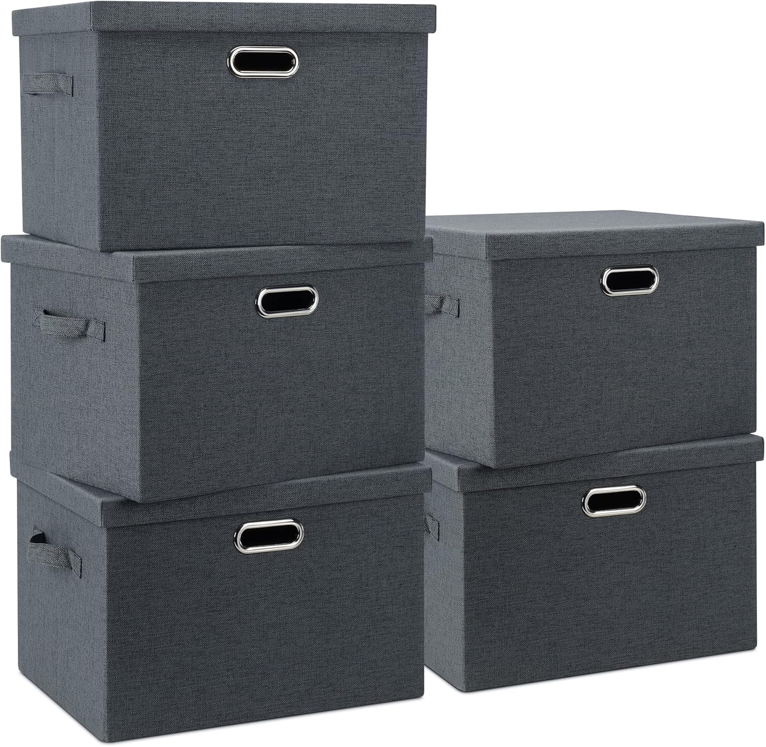 Large 17" 36 Quart Collapsible Stackable Storage Bins with Lids, 5 Packs Dark Gray Foldable Fabric Closet Storage Boxes with Lids Heavy-duty Linen Cube Baskets(17 x 12 x 11)
