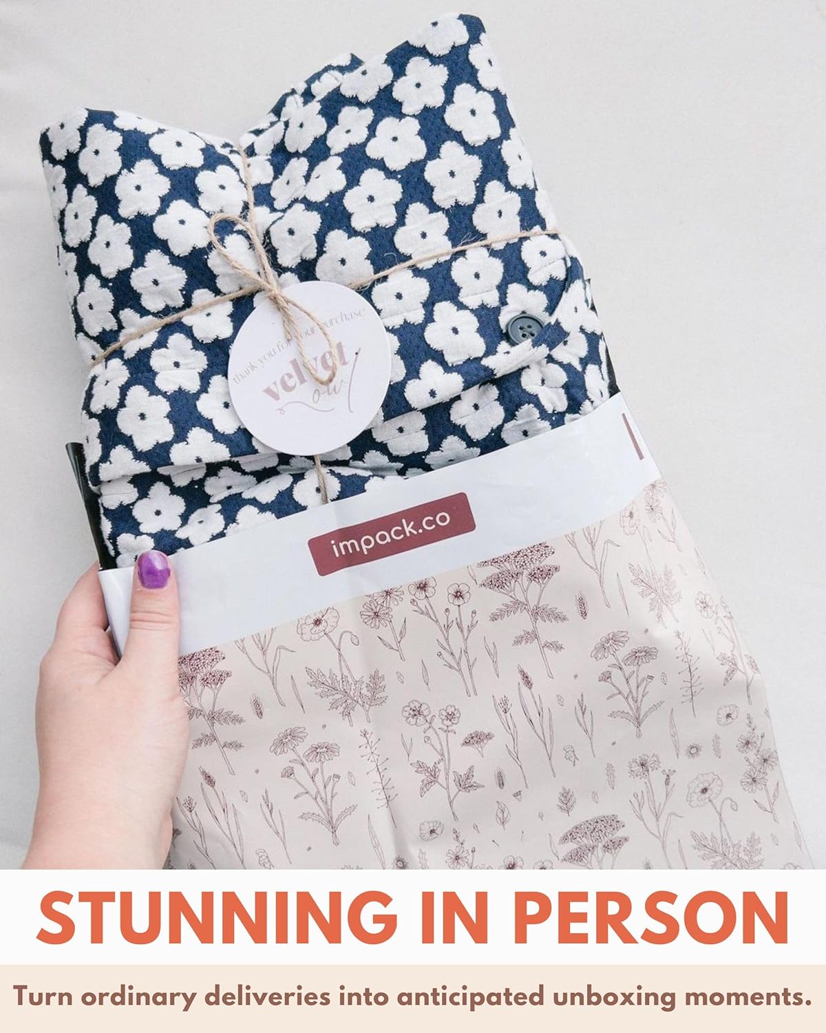 Poly Mailers 10x13-25 Pack Biodegradable Shipping Bags for Clothes - Impack Self-Seal Waterproof Thick Mailing Envelope for Accessories & Clothing - Wildflower