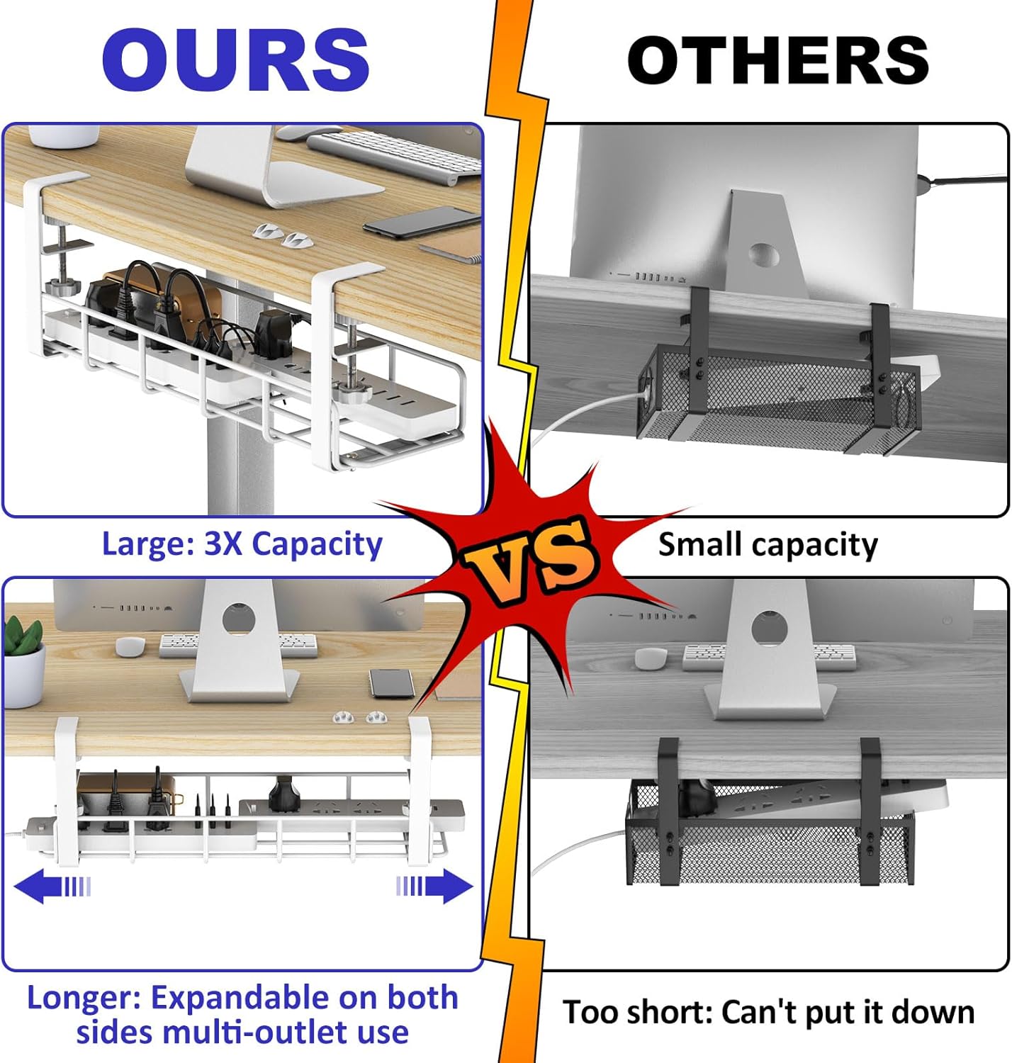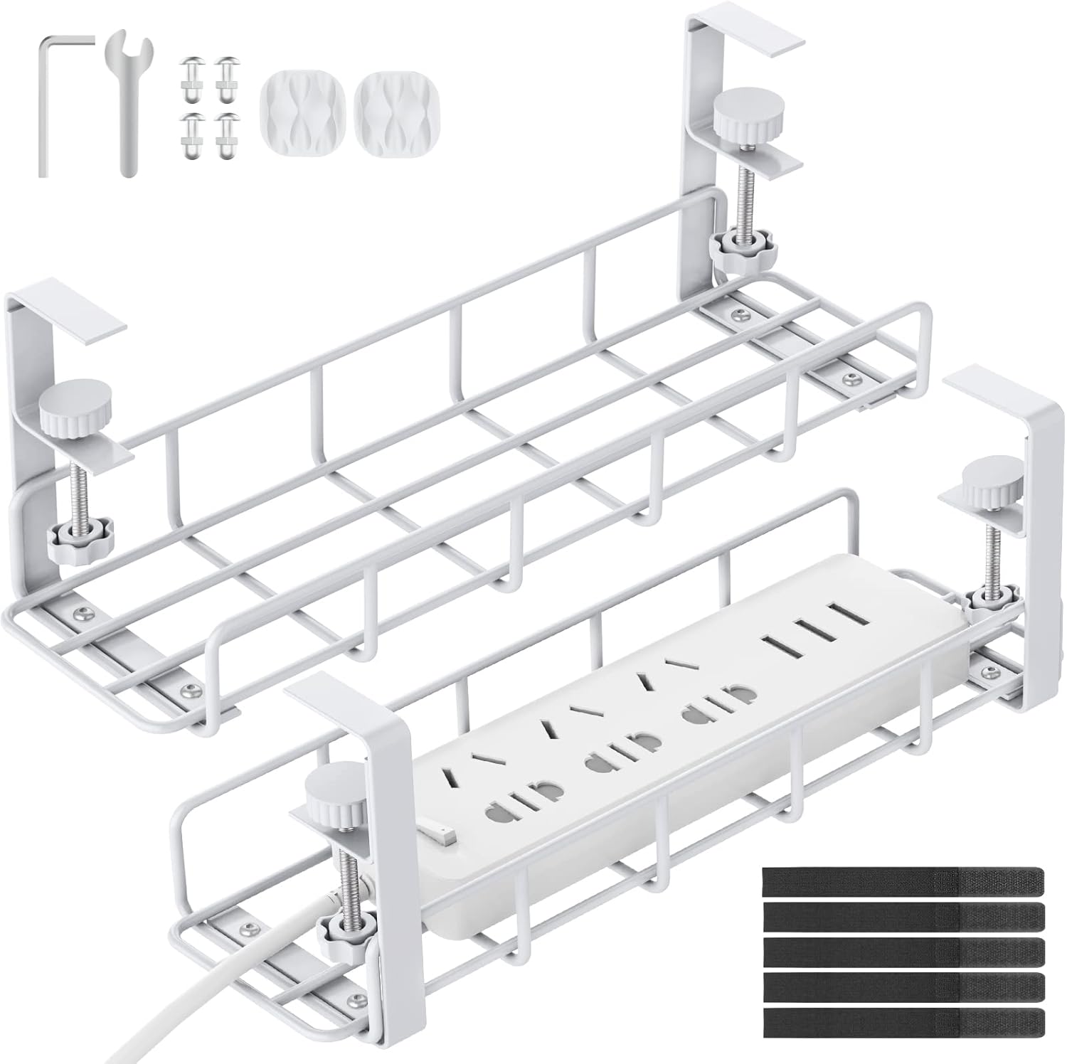 - ALL IN ONE CABLE MANAGEMENT KIT : No drill under desk cable management includes installation instructions, easy installation. Not only create space on the desk and floor, but also prevent tripping hazards.