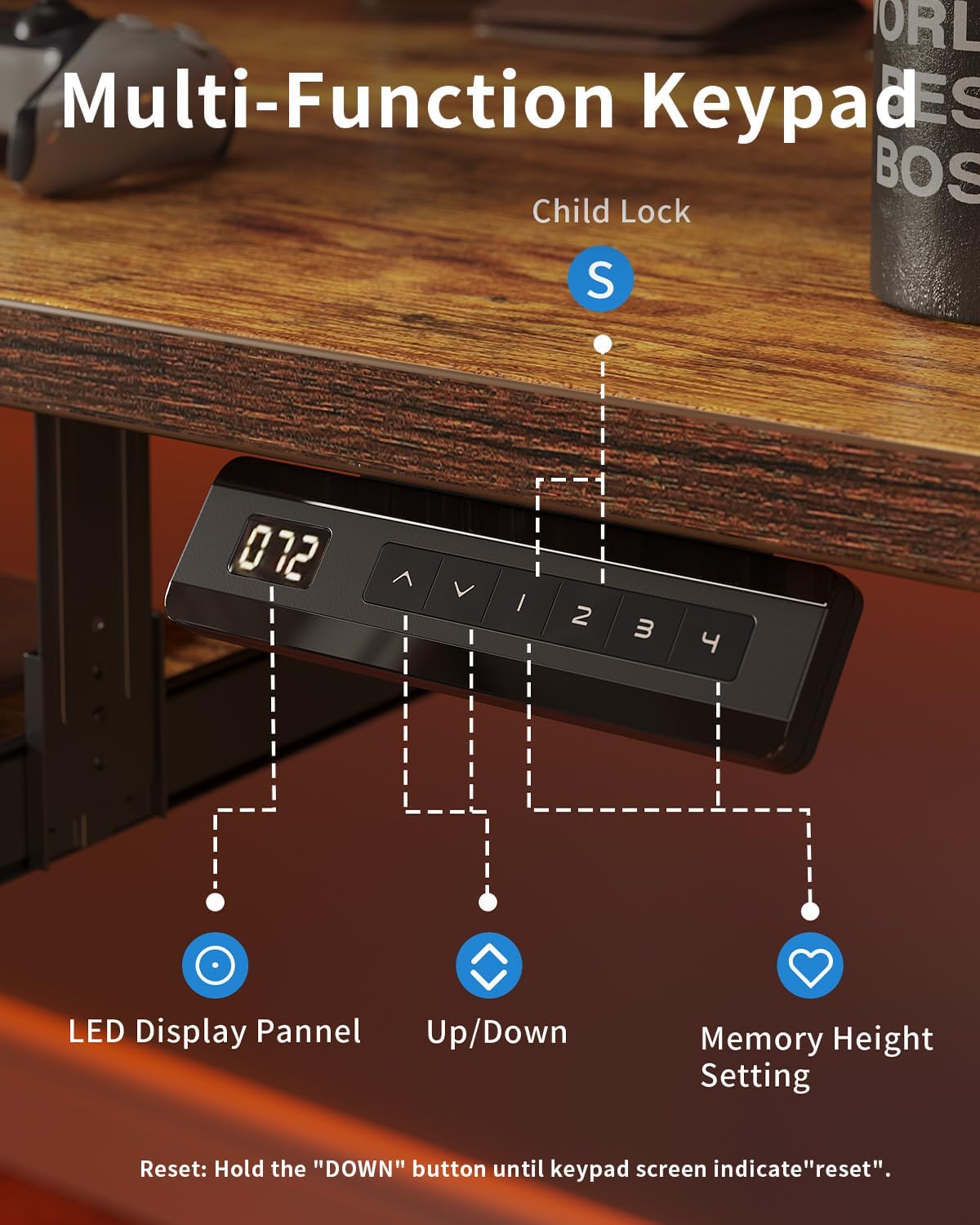 - Memory Height & Anti-Collison Technology: Standing desk has 3 programmable memory height buttons. If the adjustable desk encounters obstacles when lifting, it will move 2cm in the opposite direction to avoid possible damage or injury