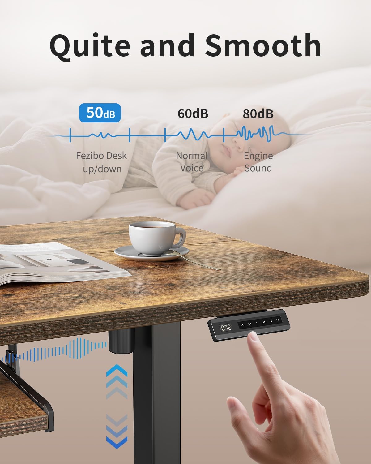 - Electric Height Adjustable Lifting System: FEZIBO standing desk has reliable motor that could support height adjustment between 27.3''-45.5'' οΌ30.3''-48.5'' with detachable lockable casters includedοΌ with low noise(under 50 dB) while running