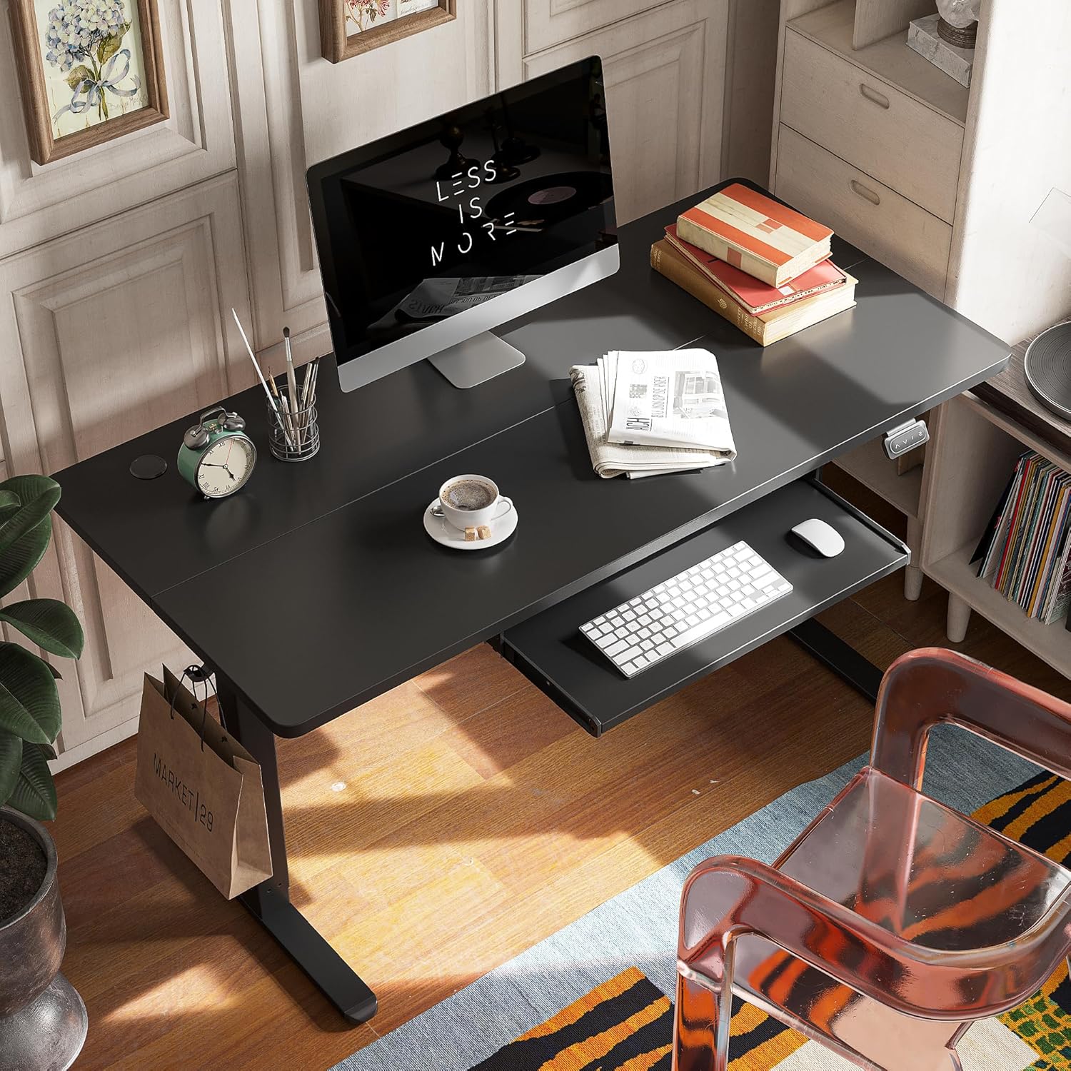 FEZIBO Standing Desk with Keyboard Tray, 60 x 24 Inch Adjustable Height Sit Stand Desk with Memory Presets for Home Office, Ergonomic Computer Workstation, Black