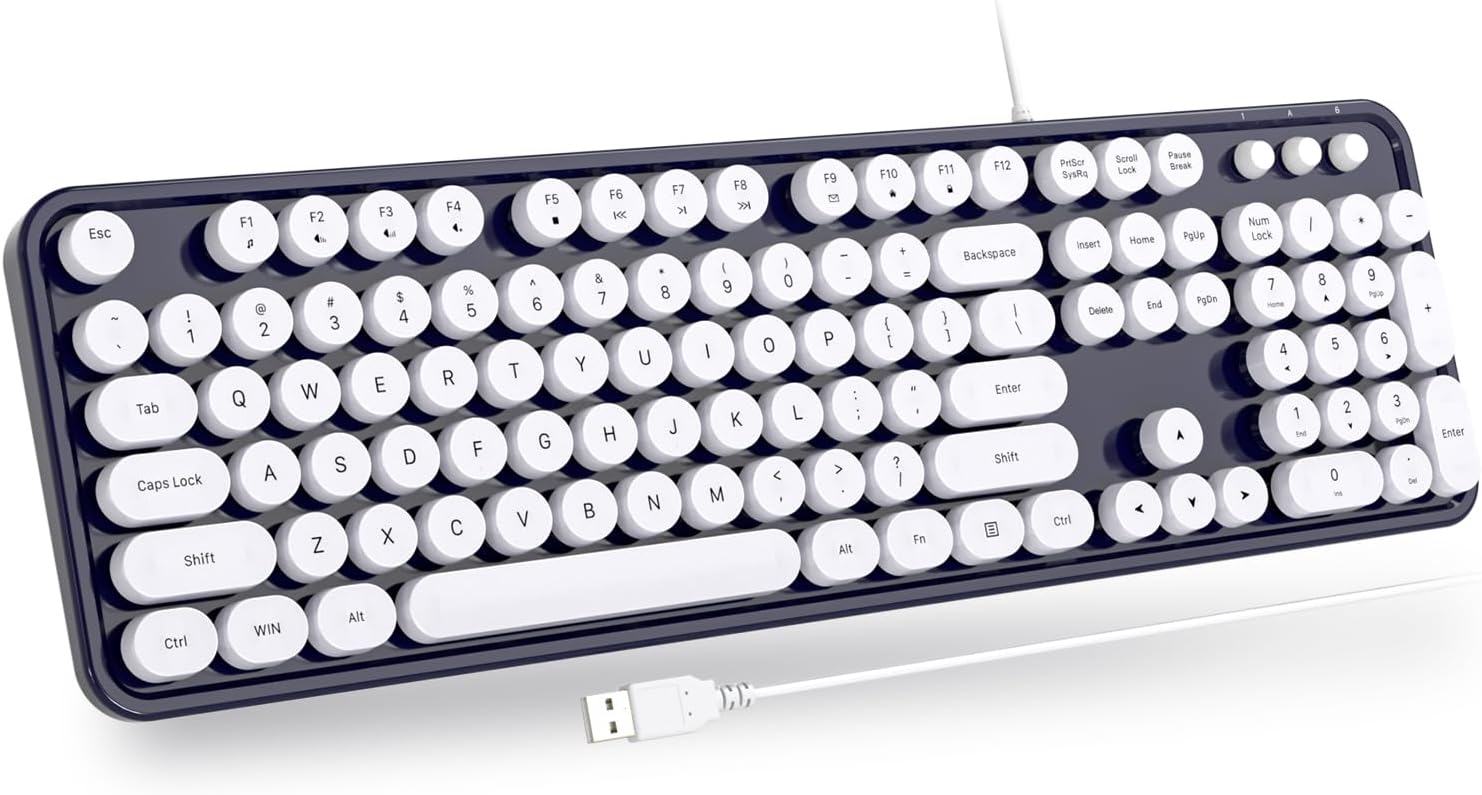 - 【Retro Typewriter Keyboard】Cute round keycaps, crisp and sweet sound, perfect knocking feel, let you find the feeling of a retro typewriter. And it’s detachable, making the keyboard easy to clean.