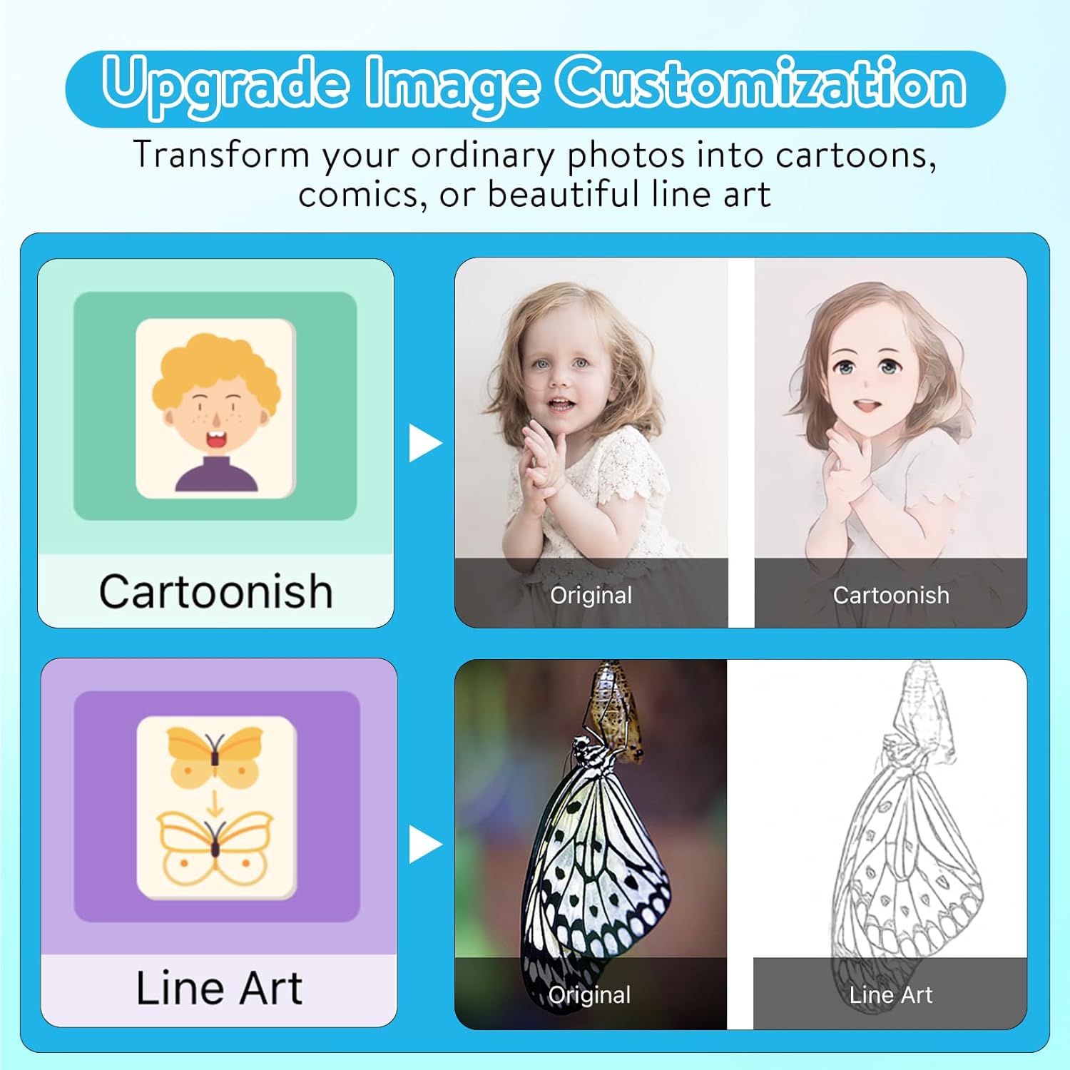 - Intelligent AI Mapping: "Tiny Print" APP printing has an AI treasure box module with six functions: graffiti practice, character cartoonization, line art, variable scenes, AI painting and creative painting. These functions can be used to create a variety of artistic creations such as autonomous drawing, line generation, character scene synthesis, etc., and can also automatically generate cartoons and comics according to your description, providing personalized and diversified printing options.
