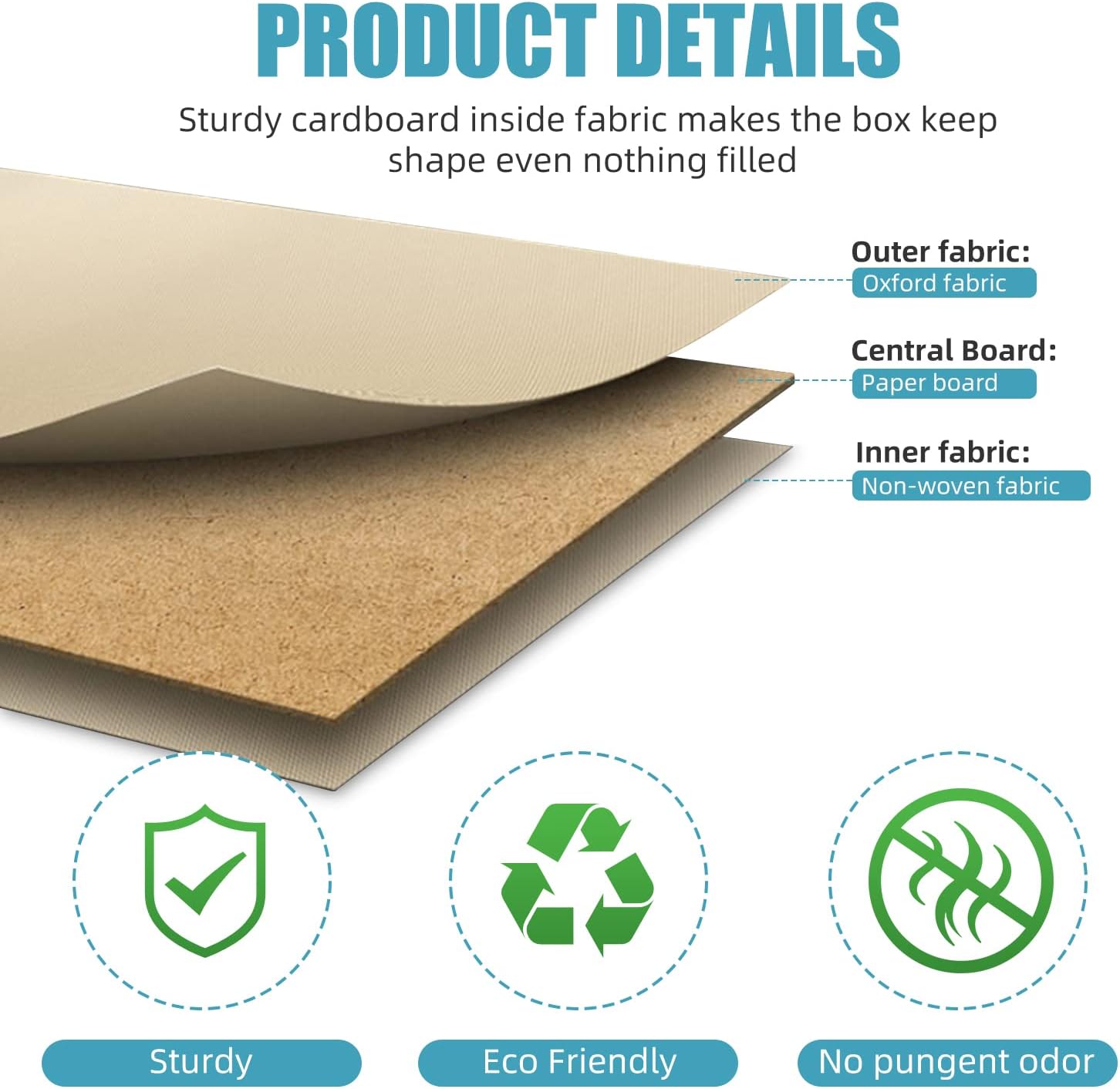 - 【Premium Quality】 - This storage bins with lids are made of durable and breathable linen fabric with the high quality cardboard on the sides and bottom. The inner 2.2mm thick cardboard maintains fabric storage box shape and structural integrity. Both handles are sewn through cardboard to make this decorative storage boxes rigid enough to hold a heavy load.