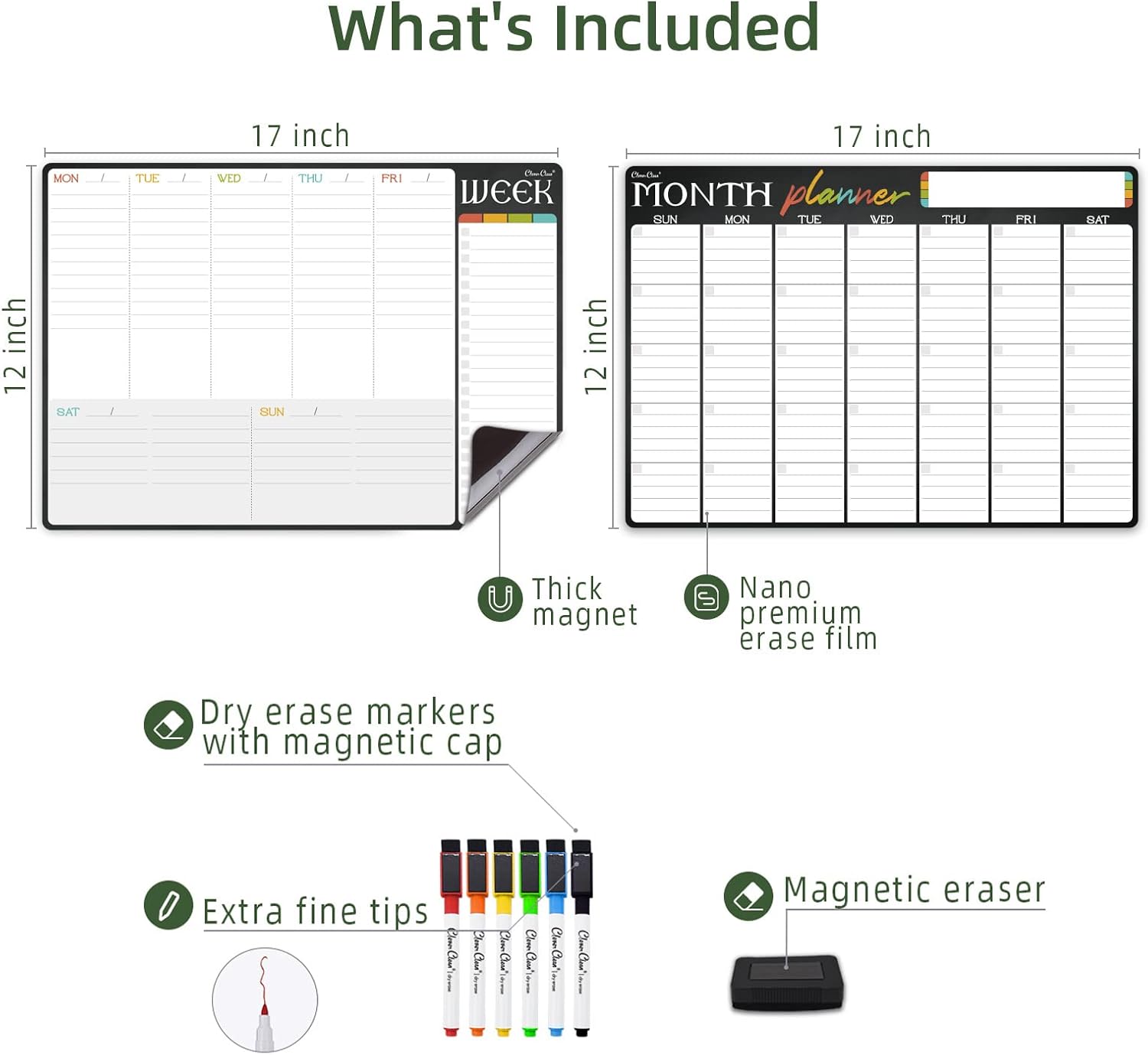 Magnetic Dry Erase Monthly and Weekly Calendar - 17"x12" Monthly and Weekly Whiteboard for Fridge - 6 Extra Fine Point Markers Included - Shipped Flat