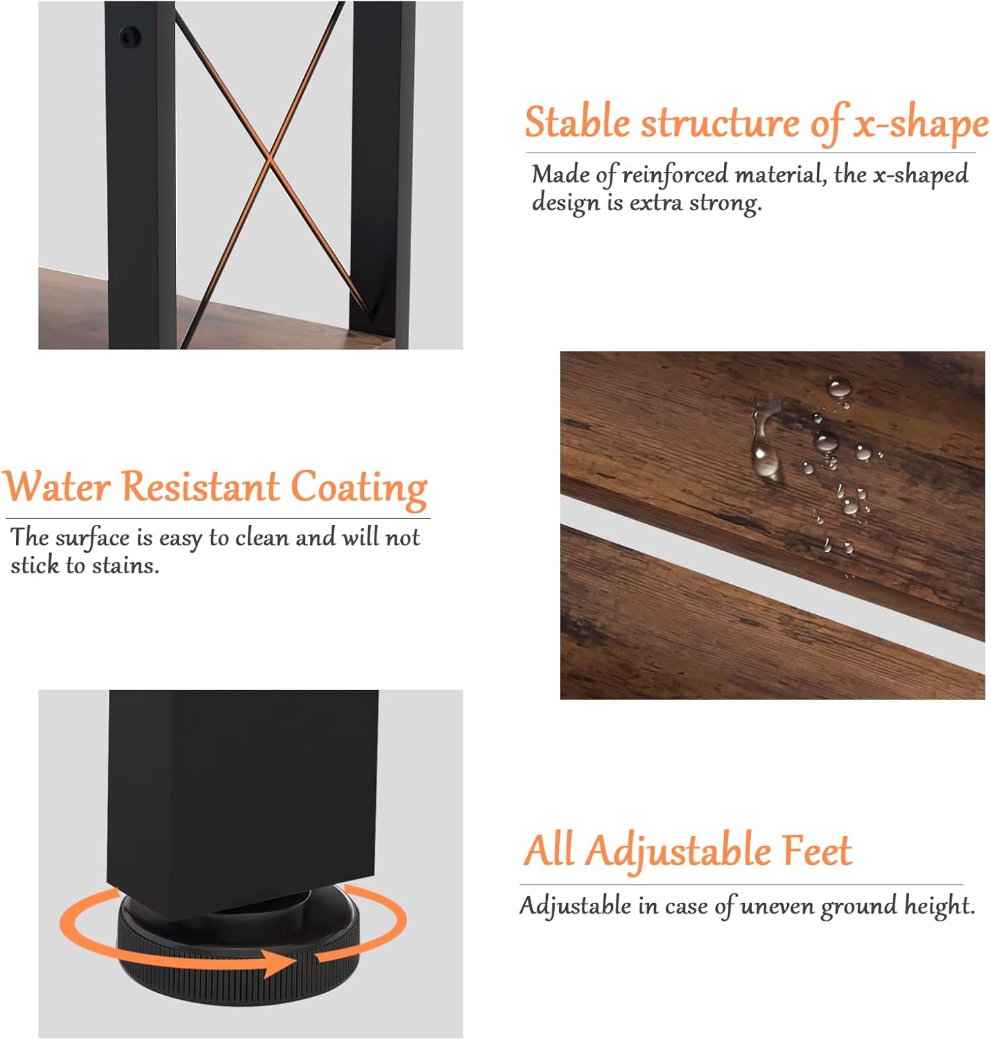 - STABLE AND STURDY: Crafted by black metal frame and rustic brown 0.59" engineered board, constructed with X cross design and adjustable feet, this book case is very stable and sturdy for long-lasting use.
